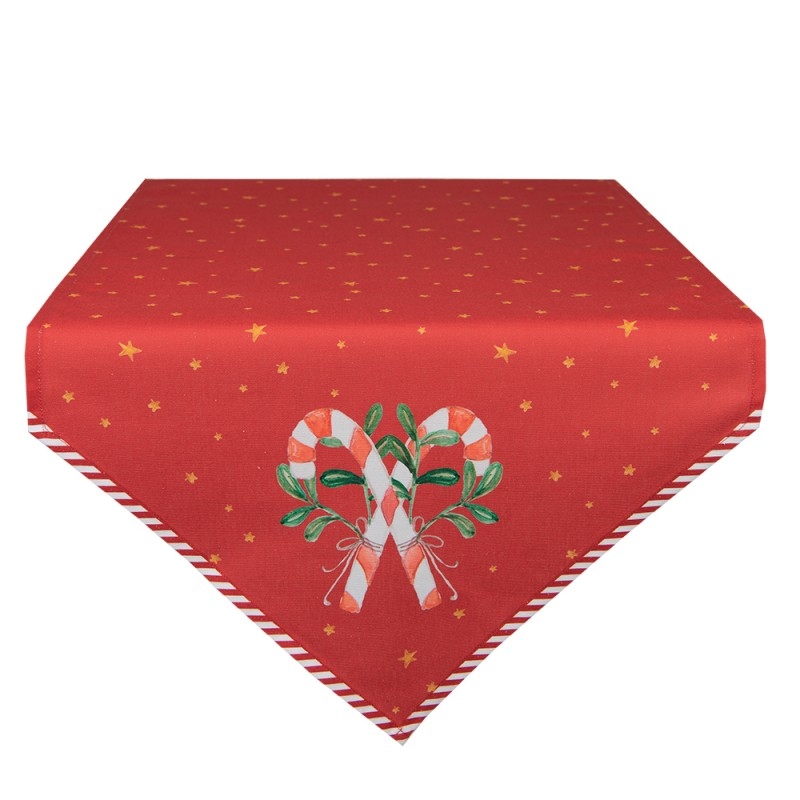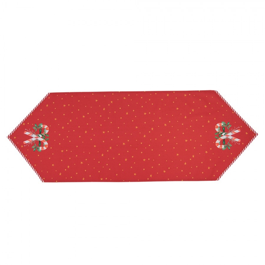 Bavlnený obrus - behúň v červenom farebnom prevedení s dekorom červených lízaniek a imela 50 x 160 cm Clayre & Eef 41999