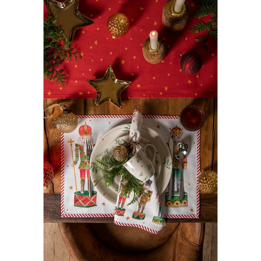 S touto textilnou sériou budú Vianoce zaručene útulnou a láskyplnou záležitosťou. Táto krásne navrhnutá séria je úplne štýlová, ak máte radi tradičnú vianočnú atmosféru. Lízanky s imelom sú ústredným prvkom tejto série a červené akcenty dotvárajú obraz. Vianočnú atmosféru na stole vytvoríte okamžite pomocou predmetov, ako sú behúne, obrúsky a prestierania. Zodpovedajúci riad je pekným doplnkom na stôl. Prineste si domov Vianoce!