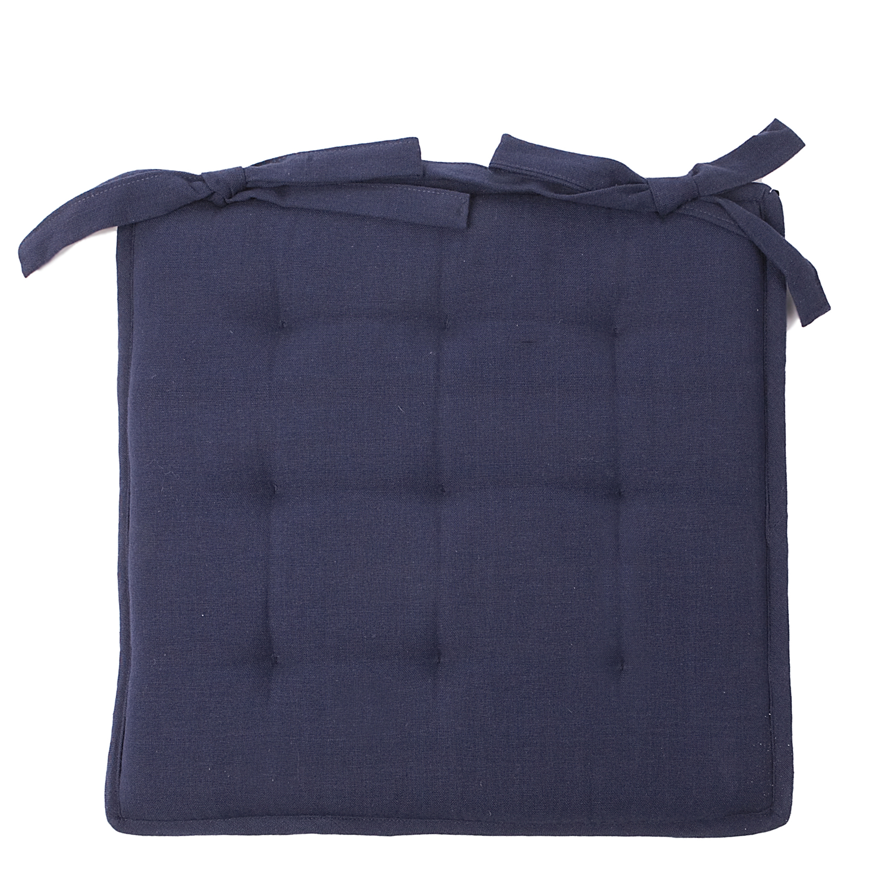 Bavlnený tmavomodrý vankúš ako podsedák so šnúrkami na zaviazanie 40 x 40 x 2 cm 36955