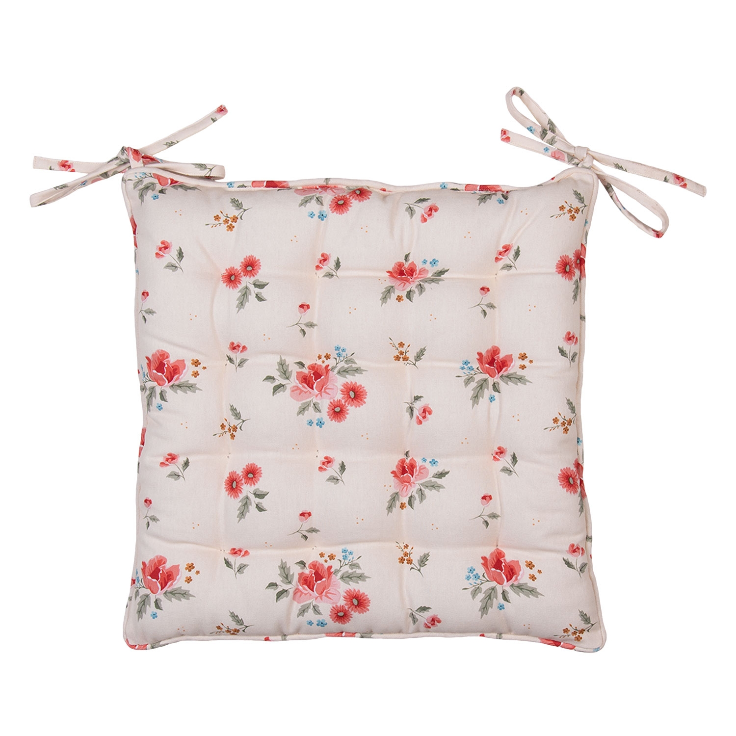 Béžový bavlnený prešívaný podsedák na stoličku s motívom kvietkov 40 x 40 cm Clayre & Eef 35616