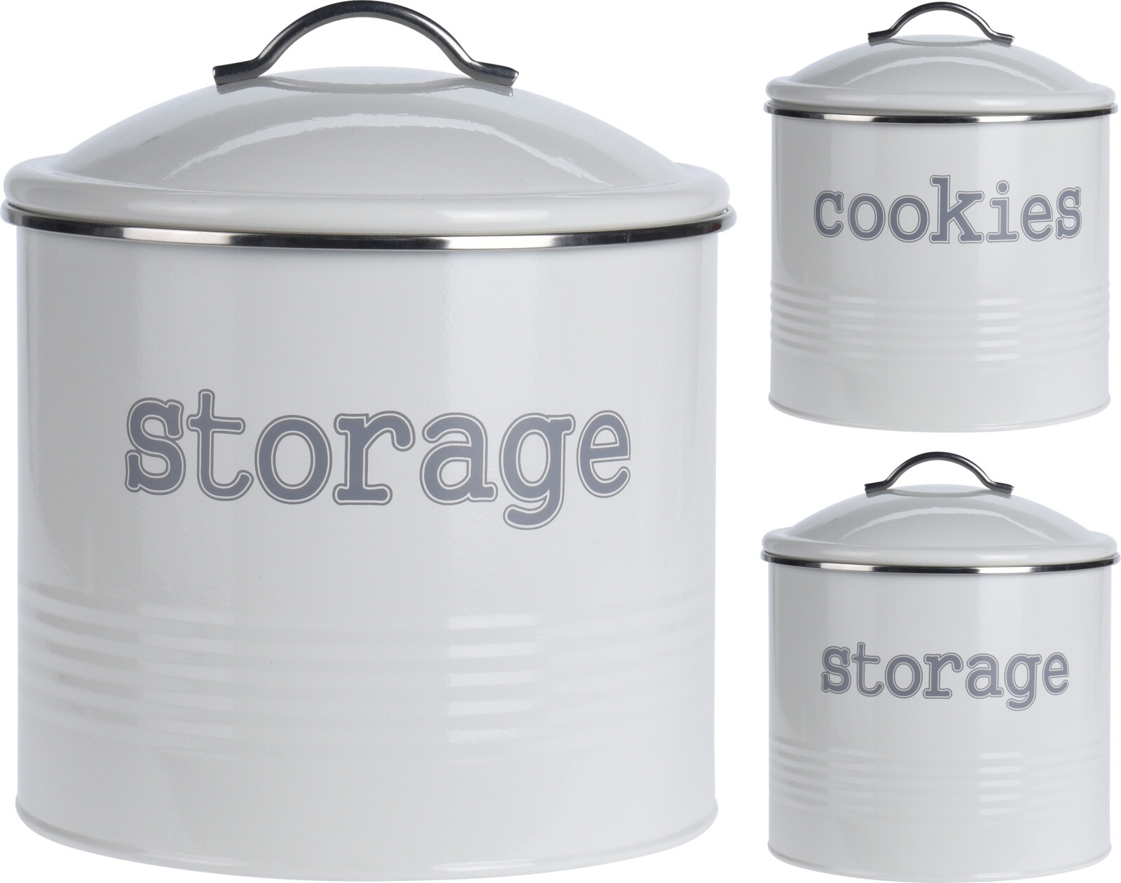 Biela plechová skladovacia dóza s vekom a so sivým nápisom 34257