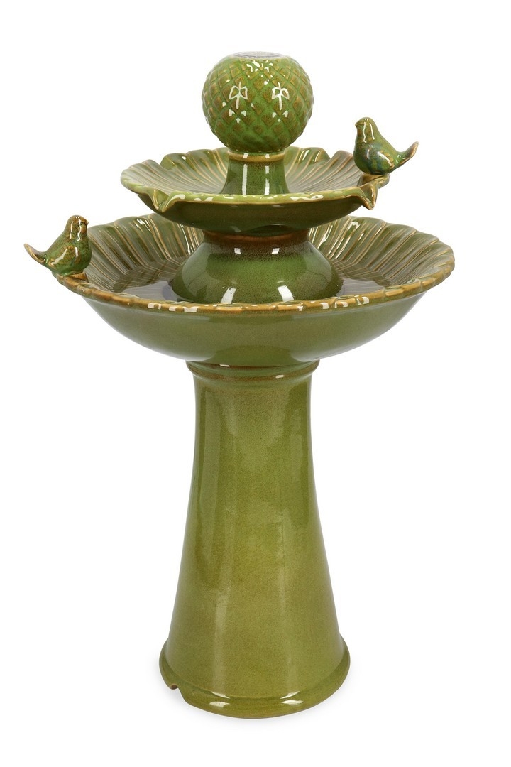 Keramická fontána v zelenom farebnom prevedení s LED osvetlením z dielne talianskej značky Bizzotto. Poskytuje príjemnú klímu, pretože prirodzene zvlhčuje vzduch. Vyrobená z keramiky, ktorá si dlho drží farebnú stálosť. Čerpadlo zaisťuje nekonečné spoľahlivé používanie. Táto exteriérová fontána môže byť umiestnená kdekoľvek v exteriéri. Rozmer fontány je 40,5 x 40,5 x 68 cm.