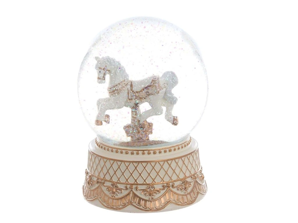 Rozprávková vianočná snehová guľa s koníkom od talianskej značky :contentReference[oaicite:0]{index=0} z kolekcie Dora je elegantnou sviatočnou dekoráciou, ktorá v sebe spája jemnosť, nostalgiu a tradičný vianočný šarm.
