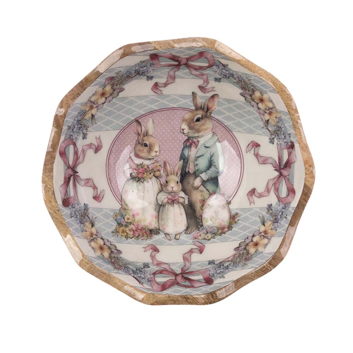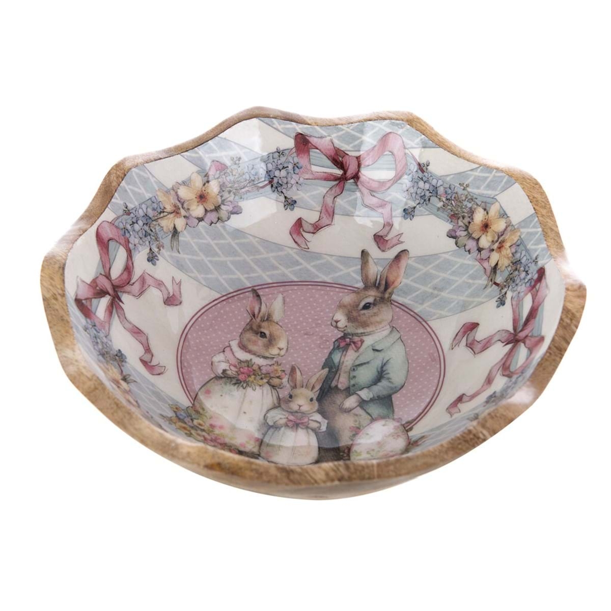 Miska z mangového dreva s veľkonočným motívom od exkluzívnej talianskej značky Blanc Maricló. Miska je vyrobená v schaby chic a romantickom štýle, ktorý si zamiluje nejeden milovník vintage doplnkov. Miska je vhodná na podávanie rôznych pokrmov. Krásny dizajn dodáva miske naozaj originálny a jedinečný vzhľad. Miska je dobre kombinovateľná s inými potrebami z tejto neodolateľnej edície.