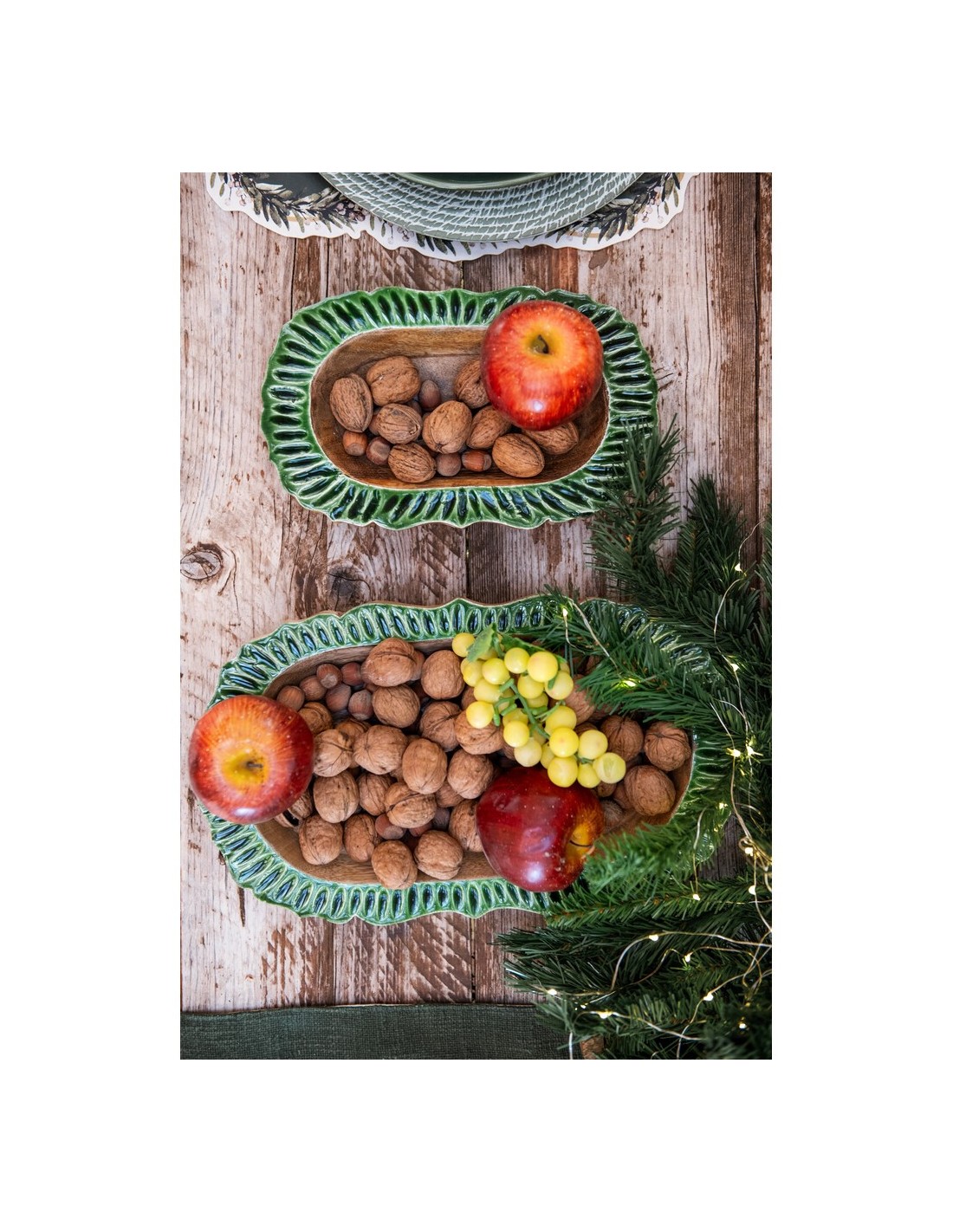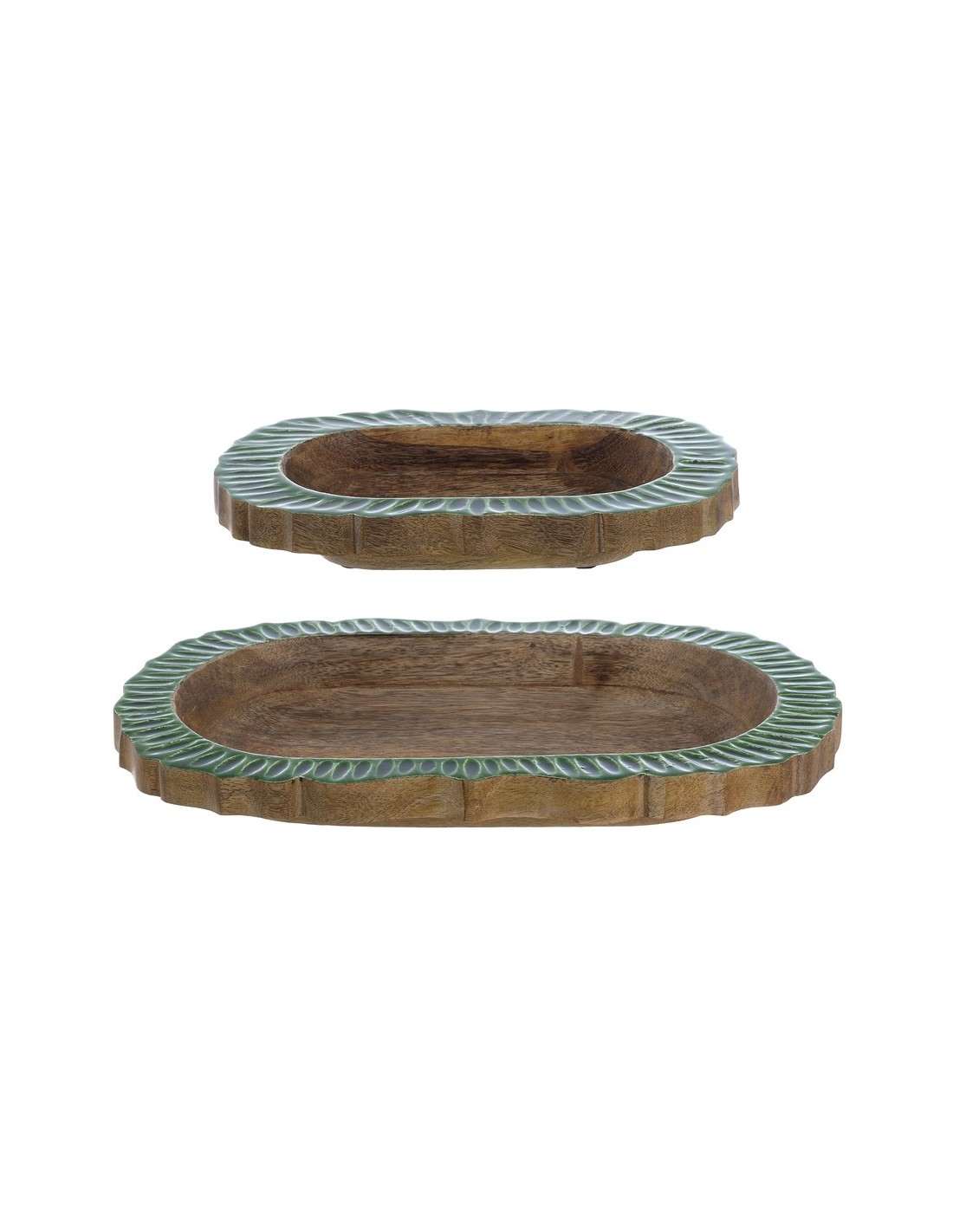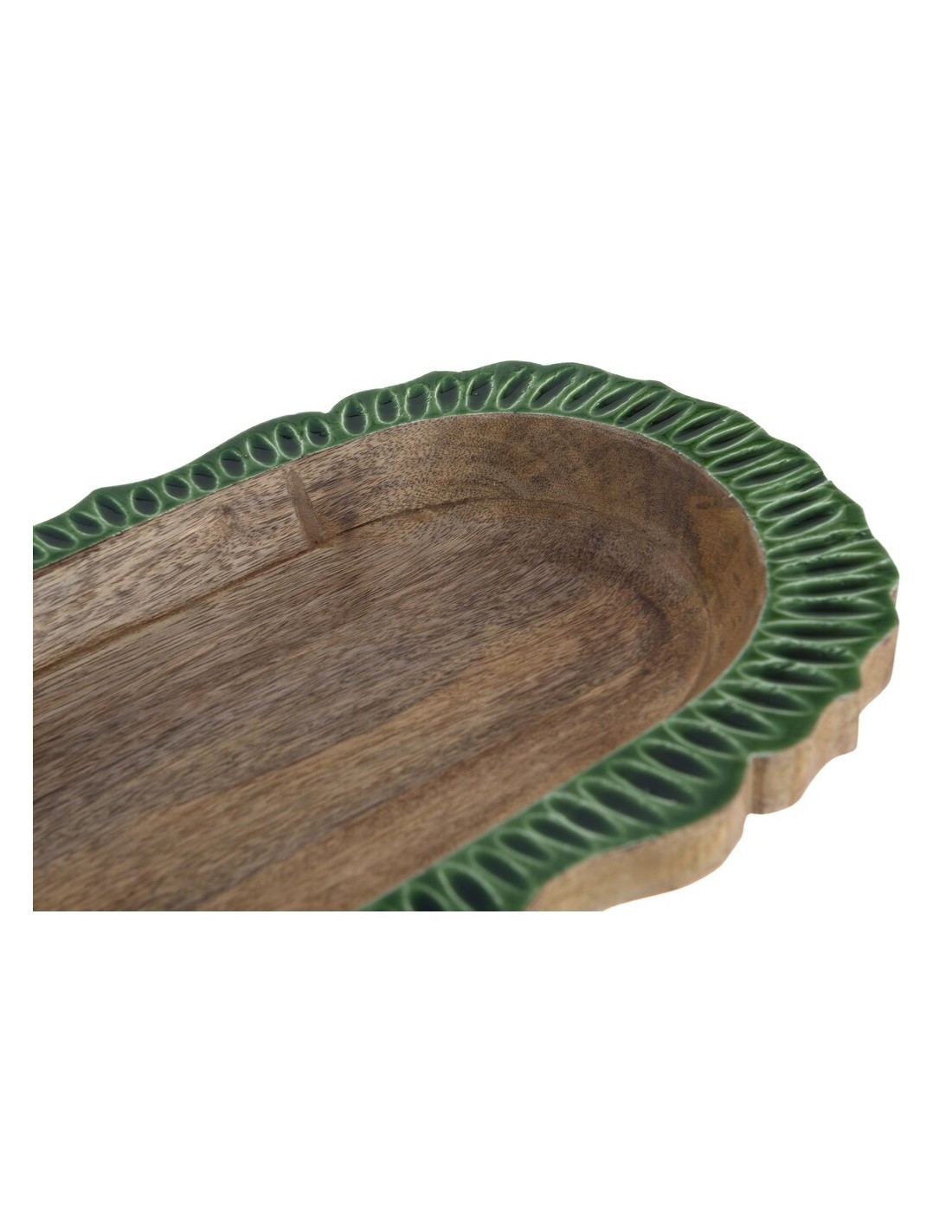 Drevená miska z mangového dreva so zeleným lemom – 38 × 22 × 5 cm – :contentReference[oaicite:0]{index=0}