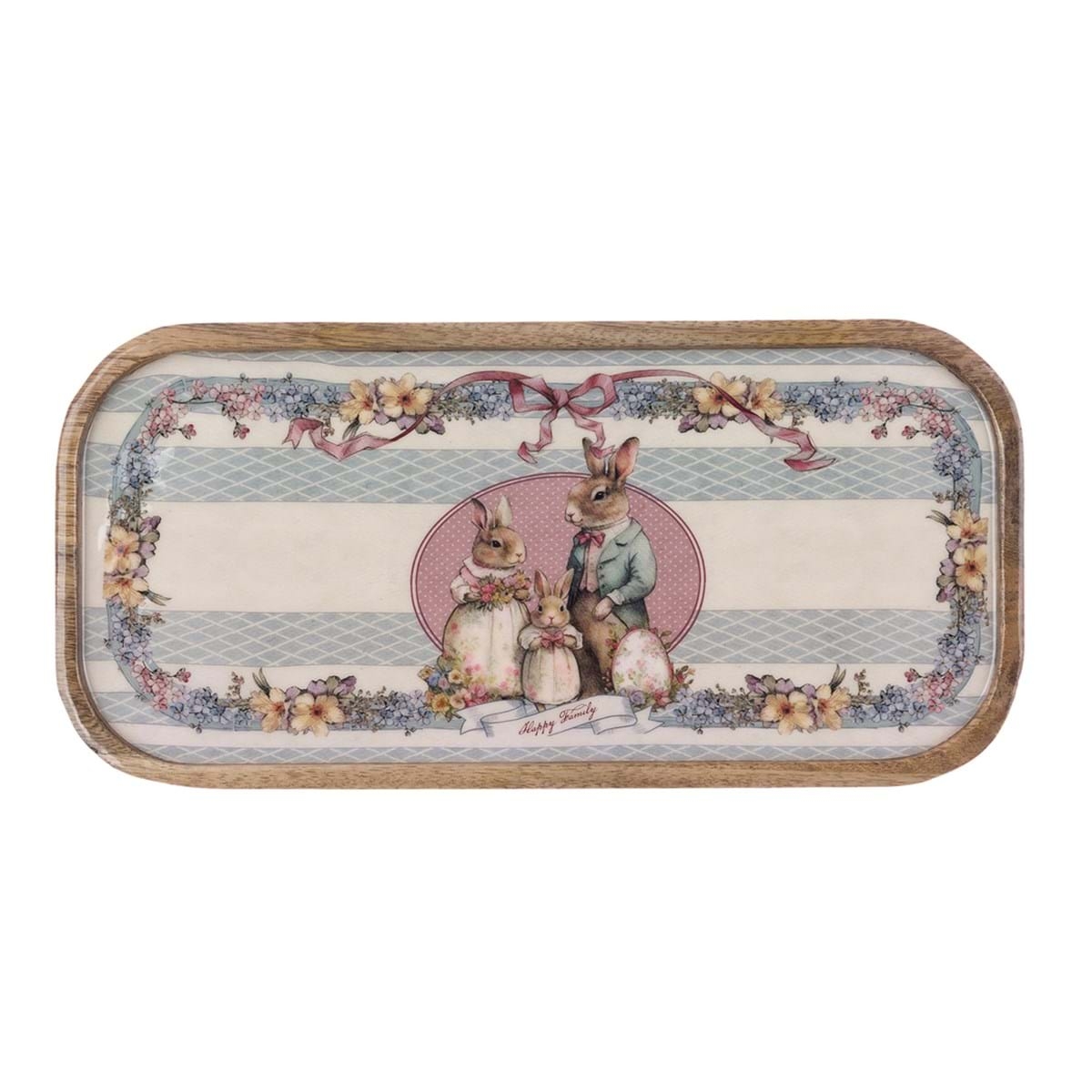 Podnos z mangového dreva s veľkonočným motívom od exkluzívnej talianskej značky Blanc Maricló. Podnos je vyrobený v schaby chic a romantickom štýle, ktorý si zamiluje nejeden milovník vintage doplnkov. Podnos je vhodný na podávanie rôznych pokrmov. Krásny dizajn dodáva podnosu naozaj originálny a jedinečný vzhľad. Podnos je dobre kombinovateľný s inými potrebami z tejto neodolateľnej edície.