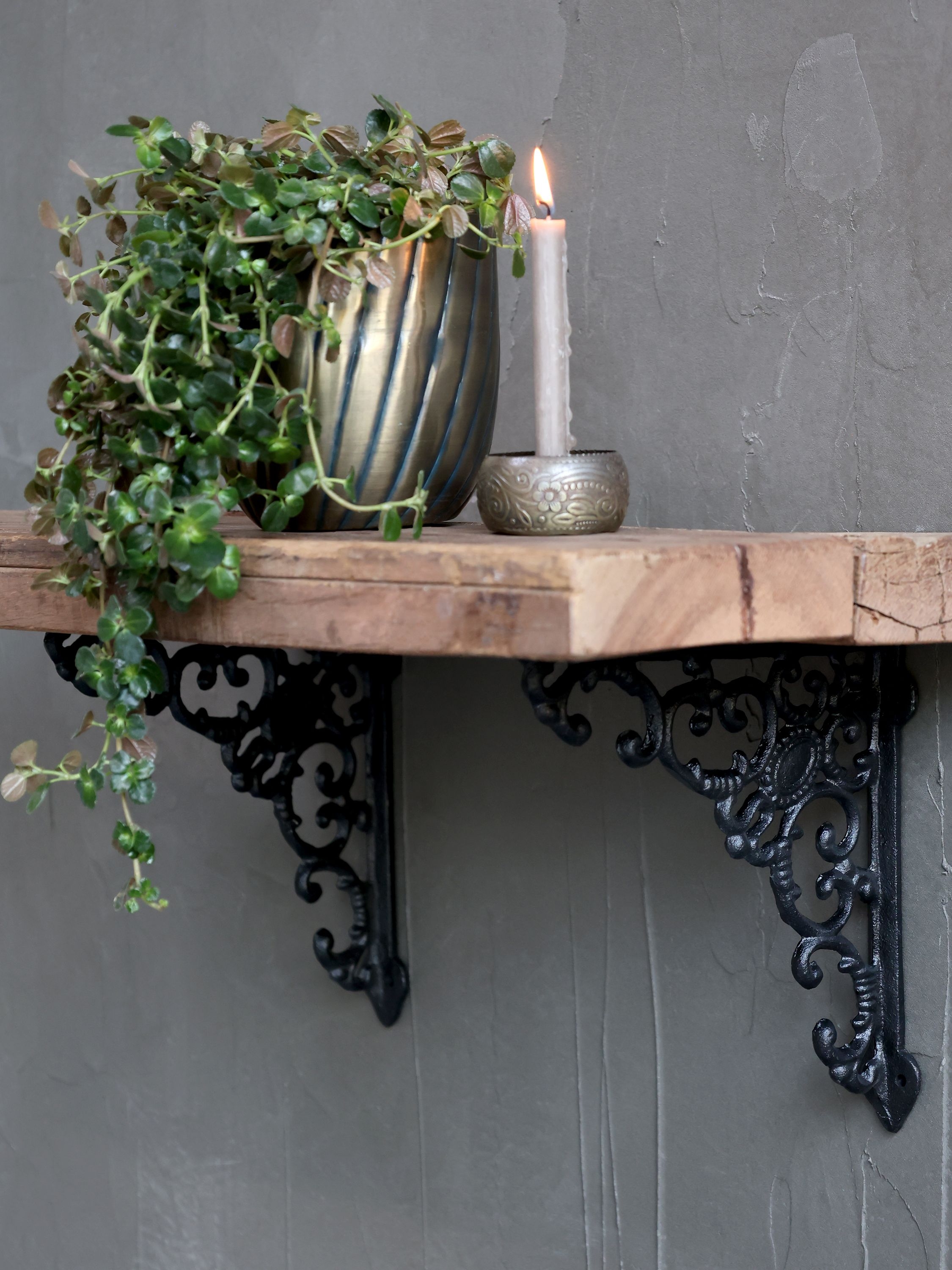 Kovová dekorácia držiaka na policu v čiernom farebnom prevedení s dekorom z dielne dánskej značky Chic Antique. Tento dekoratívny držiak sa dá jednoducho namontovať pomocou upevňovacích otvorov. Vhodné do interiéru aj do exteriéru - na terasu, balkón alebo do altánku. Rozmer držiaka je 20,5 x 19 cm.