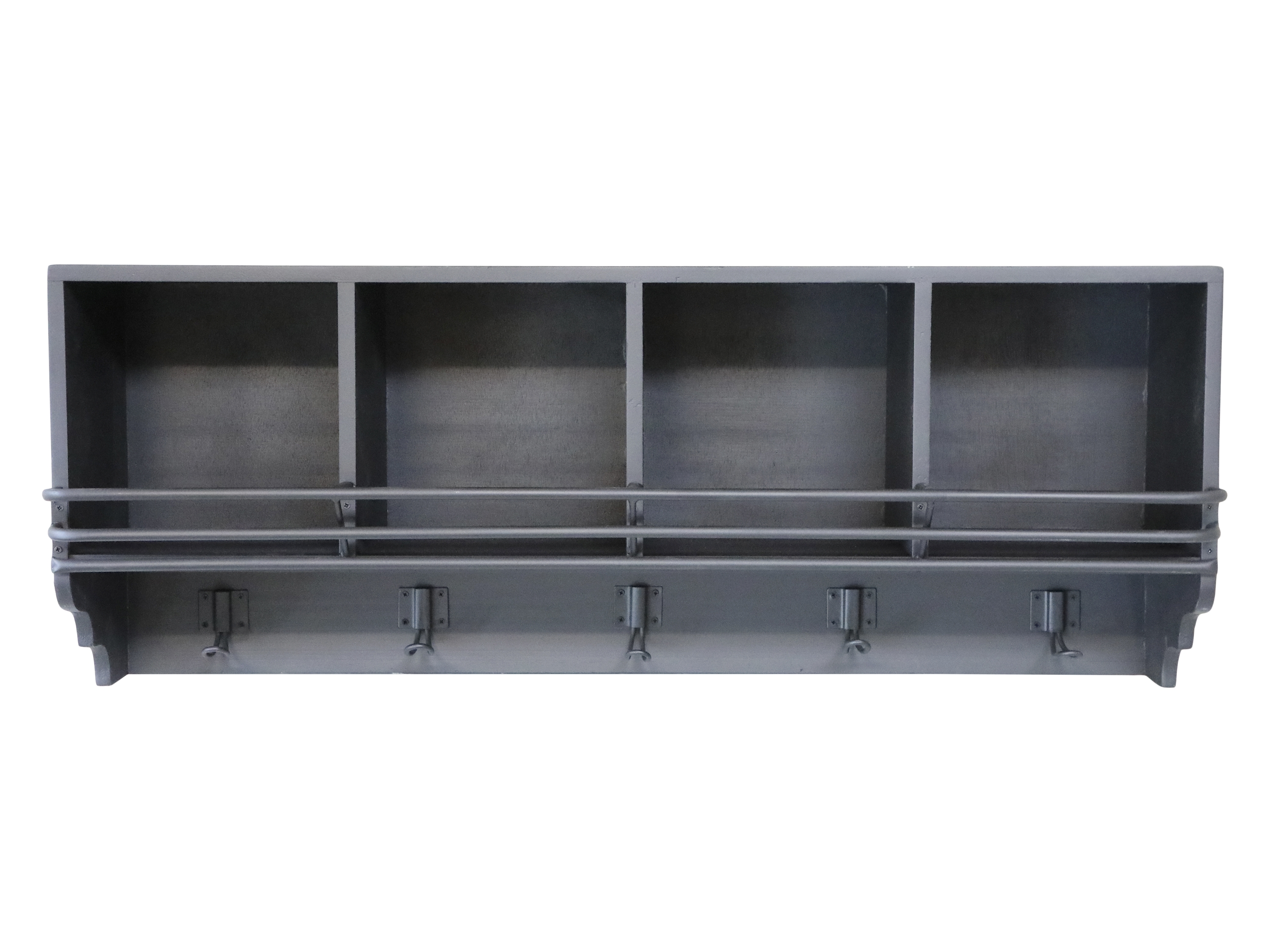 Kľúčové slová: čierna nástenná polica, drevená polička s háčikmi, vintage polica na stenu, moderný nástenný vešiak, polica s úložnými priehradkami, dizajnový nábytok na stenu, industriálny štýl, antická čierna polica, závesná polička do predsiene, organizér na stenu.