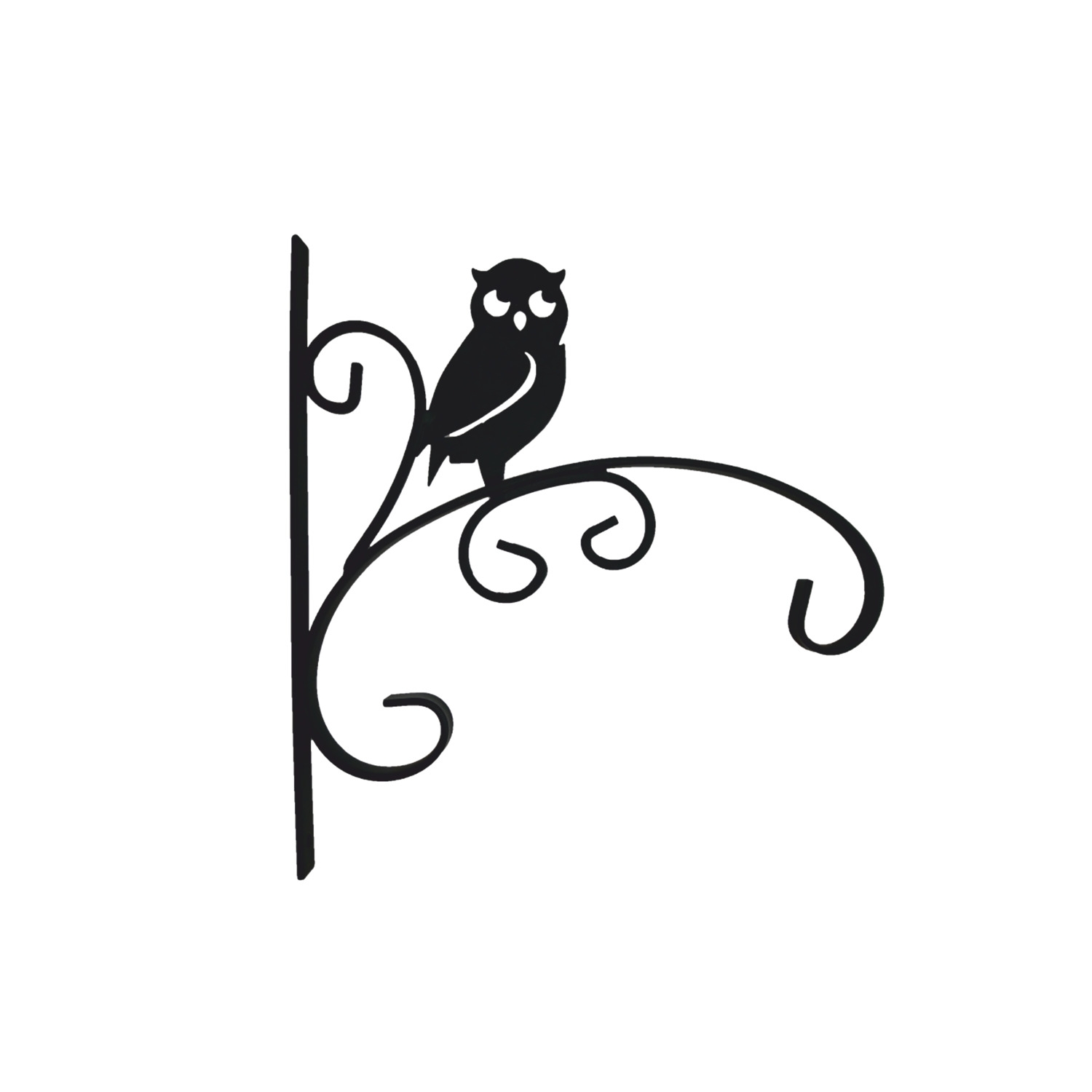 Čierna kovová konzola dekorovaný sovou. Konzolu je možné pripevniť na stenu a slúži na zavesenie kvetináča, alebo akejkoľvek inej dekorácie. Rozmer konzoly je 30x28 cm. Krásny doplnok do Vašej záhrady.