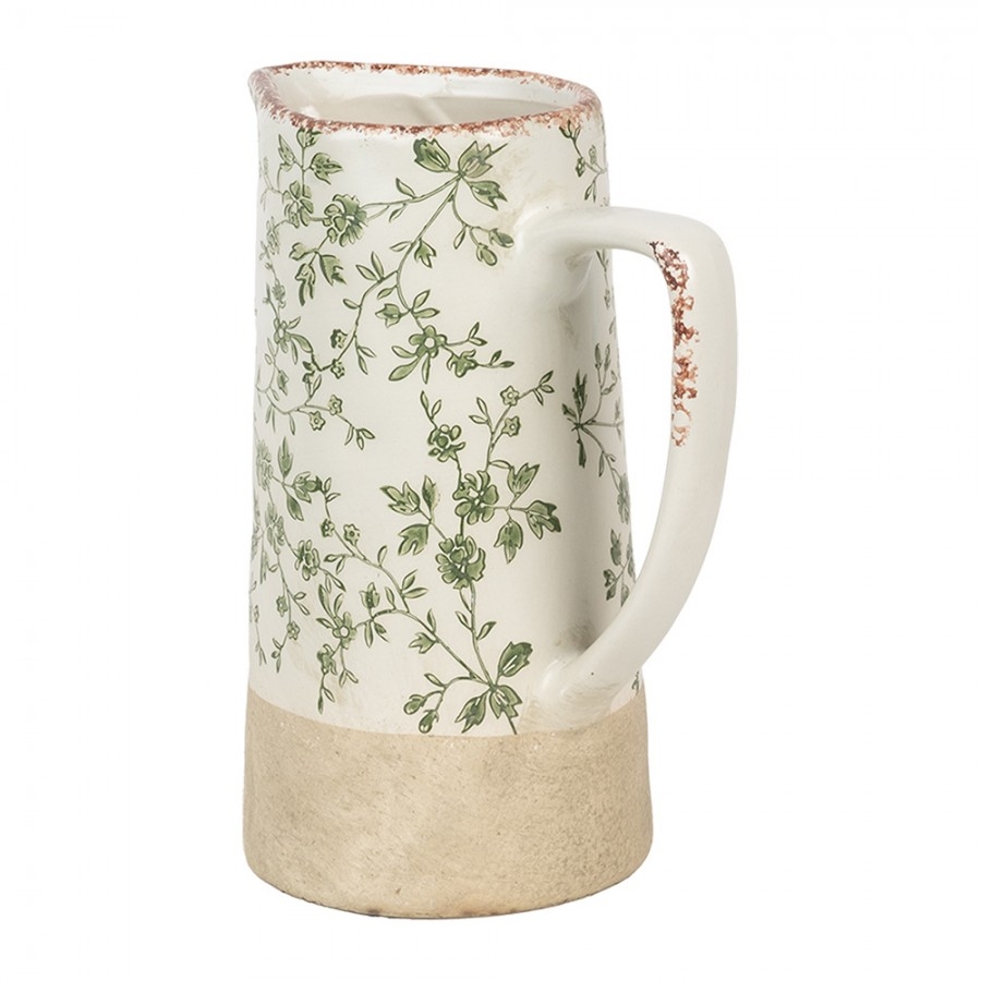 Clayre & Eef Džbán - váza keramika zelené kvietky 21x14x26 cm 46443
