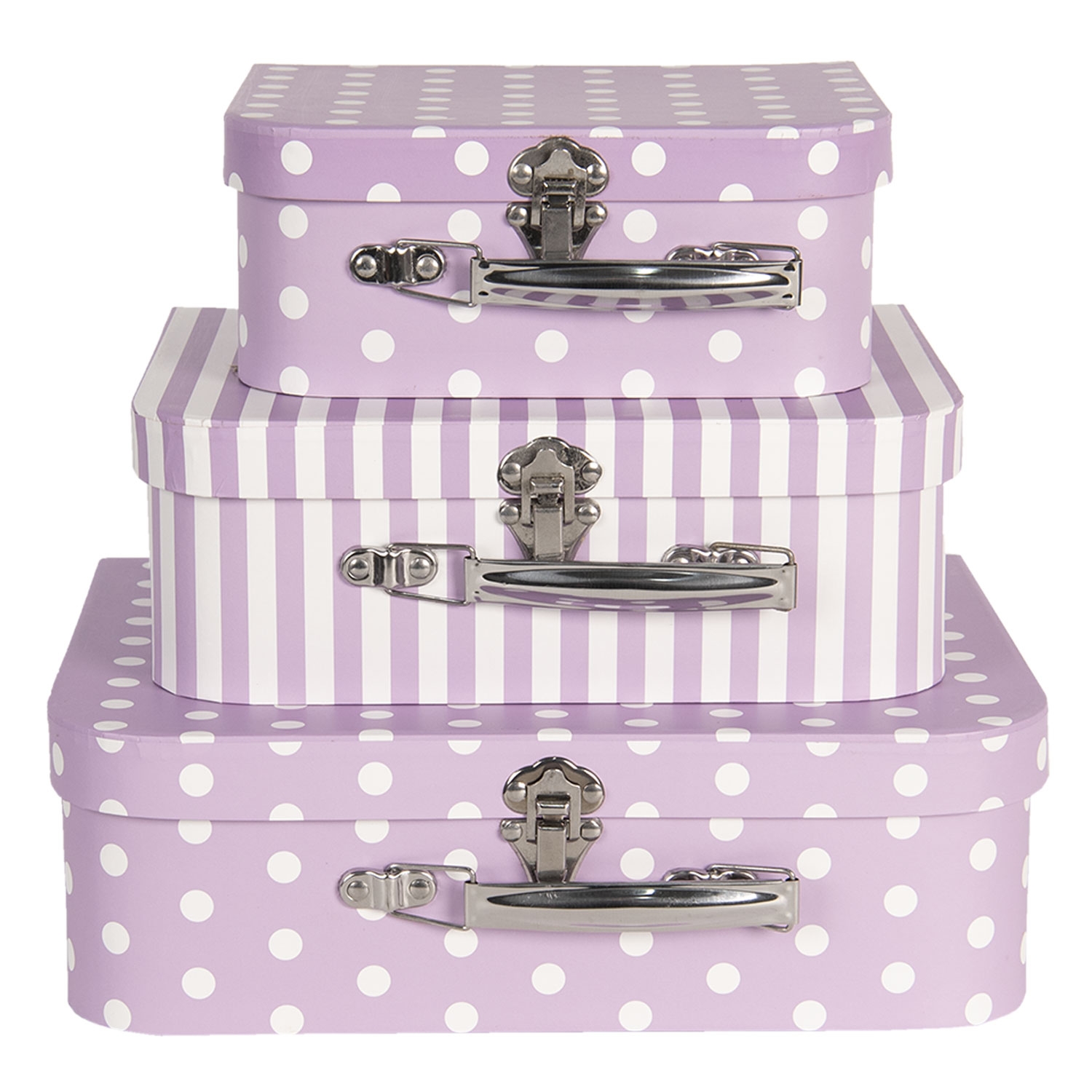 Kufrík – fialový s bielymi bodkami, 20 × 16 × 8 cm