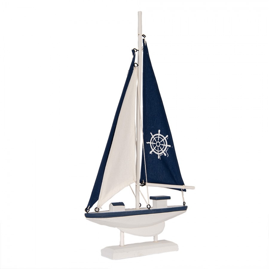 Drevená dekorácia plachetnice v bielo-modrom farebnom prevedení na stojane z dielne holandskej značky Clayre & Eef. Plachetnica je originálnym a jedinečným kúskom pre každú domácnosť. Veľmi milá dekorácia pre všetkých milovníkov mora. Vhodná aj ako darček pre veľkého milovníka mora. Má krásne prepracované detaily. Rozmer plachetnice je 20 x 4 x 37 cm.