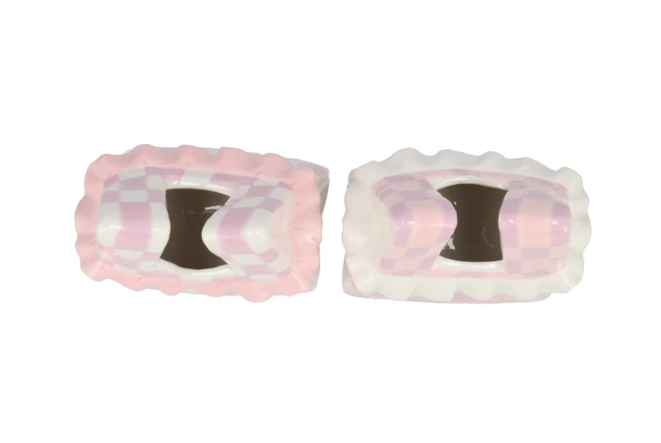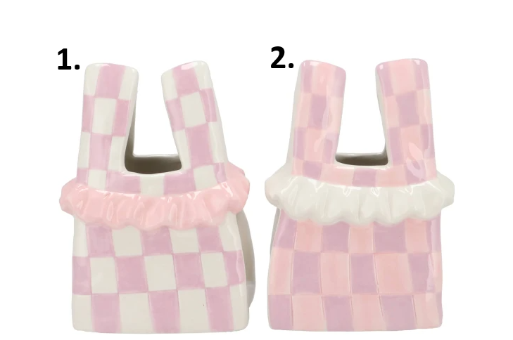 Keramický kvetináč v tvare tašky – Daan Kromhout (2 farebné varianty s kockovaným dekorom)