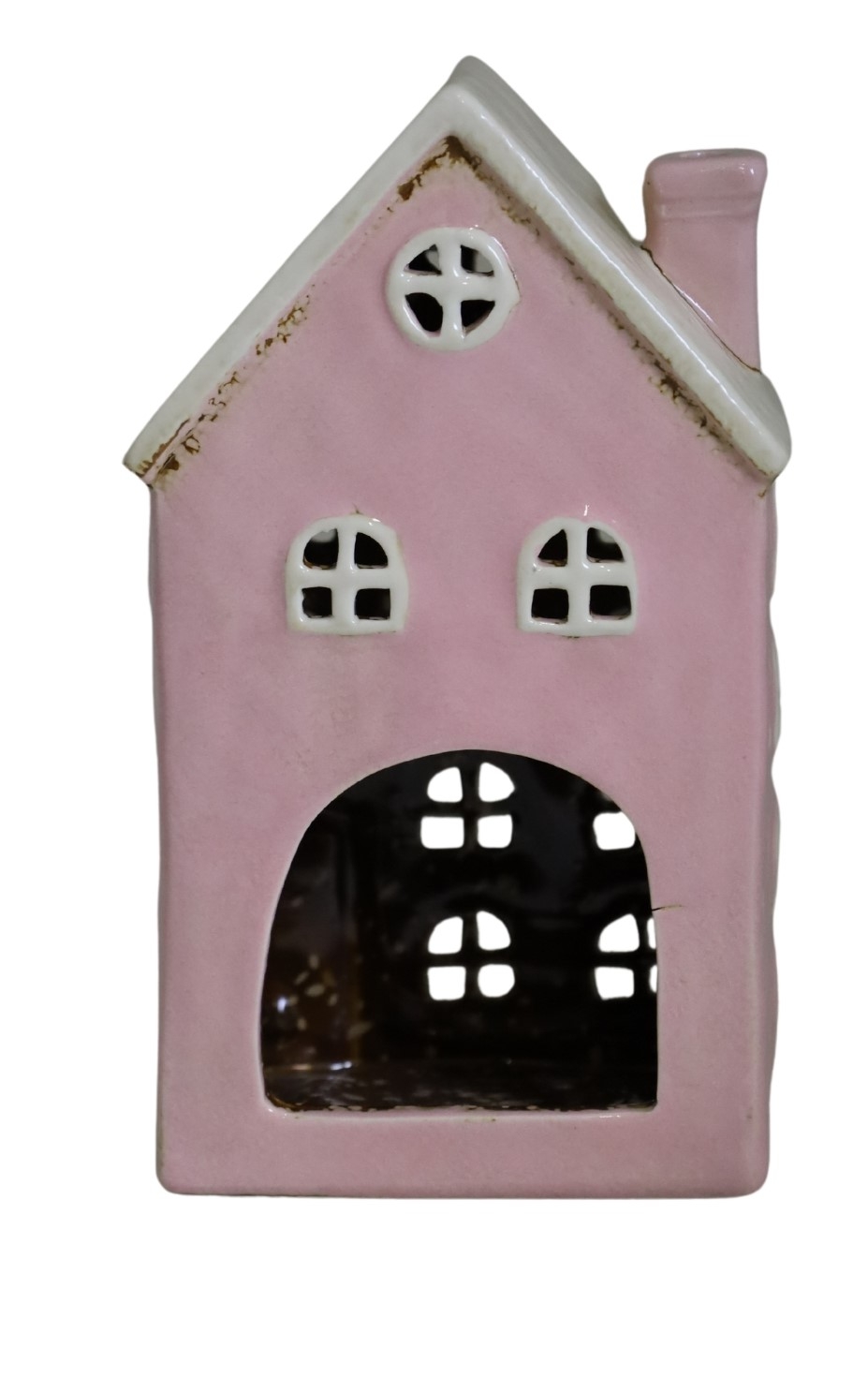 Domček keramika na sviečku ružový 12,5x9x20,5 cm 45734
