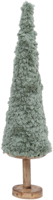Drevená dekorácia vianočného stromčeka potiahnutého so zelenou huňatou textíliou 11 x 2 x 55 cm 42170