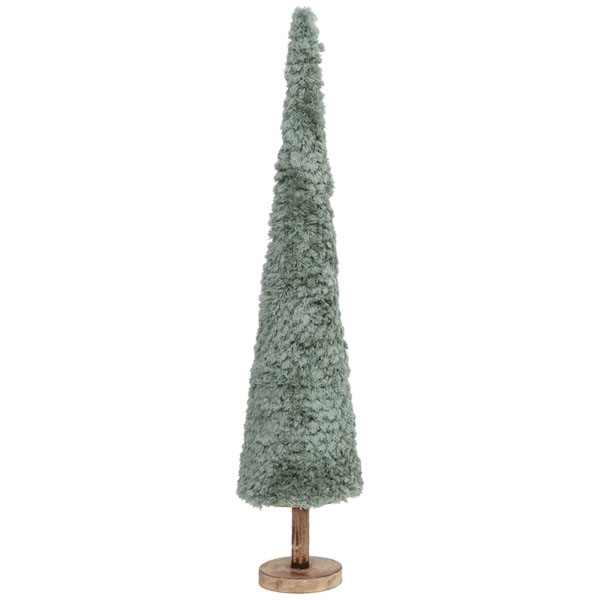 Drevená dekorácia vianočného stromčeka potiahnutého so zelenou huňatou textíliou 15 x 2 x 80 cm 42171