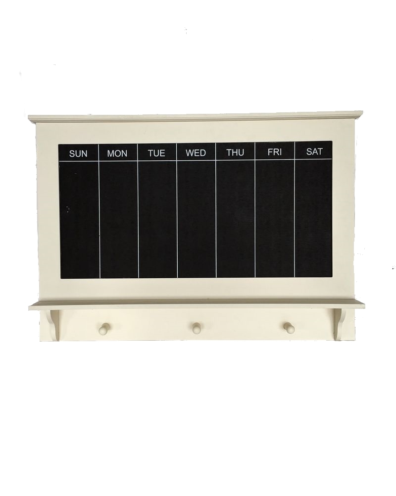 Drevená tabuľa v bielom farebnom prevedení s dňami v týždni a tromi vešiakmi je jedinečným a užitočným pomocníkom do každej domácnosti. Tabuľa slúži zároveň na zaznamenávanie si dôležitých udalostí aj ako vešiak na zavesenie. Vďaka bielemu prevedeniu sa tabuľa hodí kdekoľvek. Možné tabuľu využiť v interiéri ale aj v krytom exteriéri. Rozmer tabule je 70 x 48 x 8 cm.