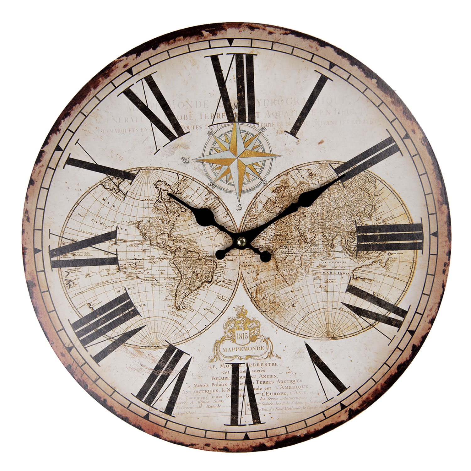 Drevené hnedo-biele nástenné hodiny v country vintage štýle s mapou sveta Ø 34*4 cm Clayre & Eef 35003 - obrázok 1
