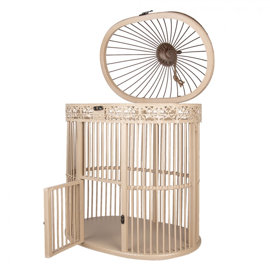 Dreveno-kovová dekorácia vtáčej klietky v krémovom farebnom prevedení s dekorom vtáčika z dielne holandskej značky Clayre & Eef . Táto vtáčia klietka je skutočným lákadlom vo vašej domácnosti. Má grandiózny vzhľad, ktorý okamžite upúta. Môžete do nej vložiť všetky druhy pekných bytových doplnkov. Myslite na svietniky, sochy a postavy, umelé rastliny a mnoho ďalšieho. Buďte kreatívni s vtáčou klietkou Clayre & Eef! Rozmer klietky je 47 x 32 x 60 cm.