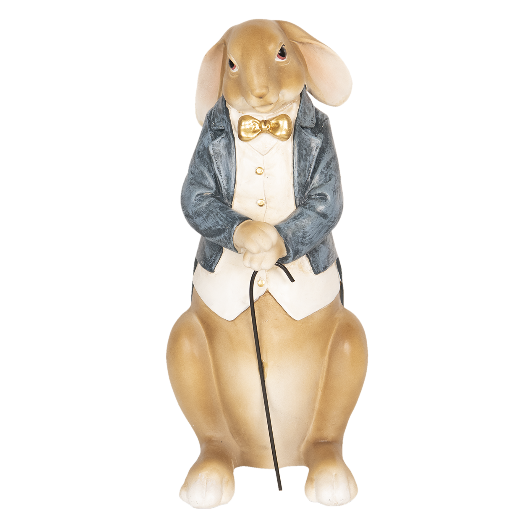 Elegantný usmiaty zajac v modrom saku a s paličkou v ruke 32 cm Clayre-Eef 29243