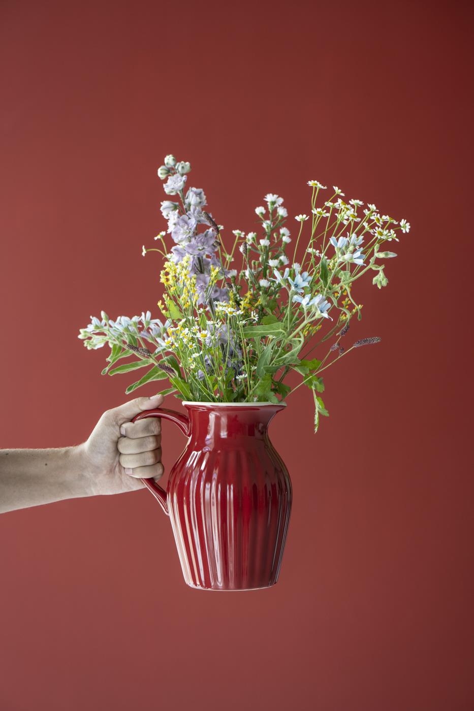 Keramický džbán Mynte v červenom farebnom prevedení z dielne dánskej značky Ib Laursen. Džbán je originálnym a užitočným pomocníkom do každej domácnosti. Vďaka originálnemu retro vzhľadu vyzerá džbán esteticky krásne. Džbán je dobre kombinovateľný s inými kuchynskými potrebami z tejto neodolateľnej edície. Rozmer džbána 14 x 21 x 20 cm / 1,7 litra.
