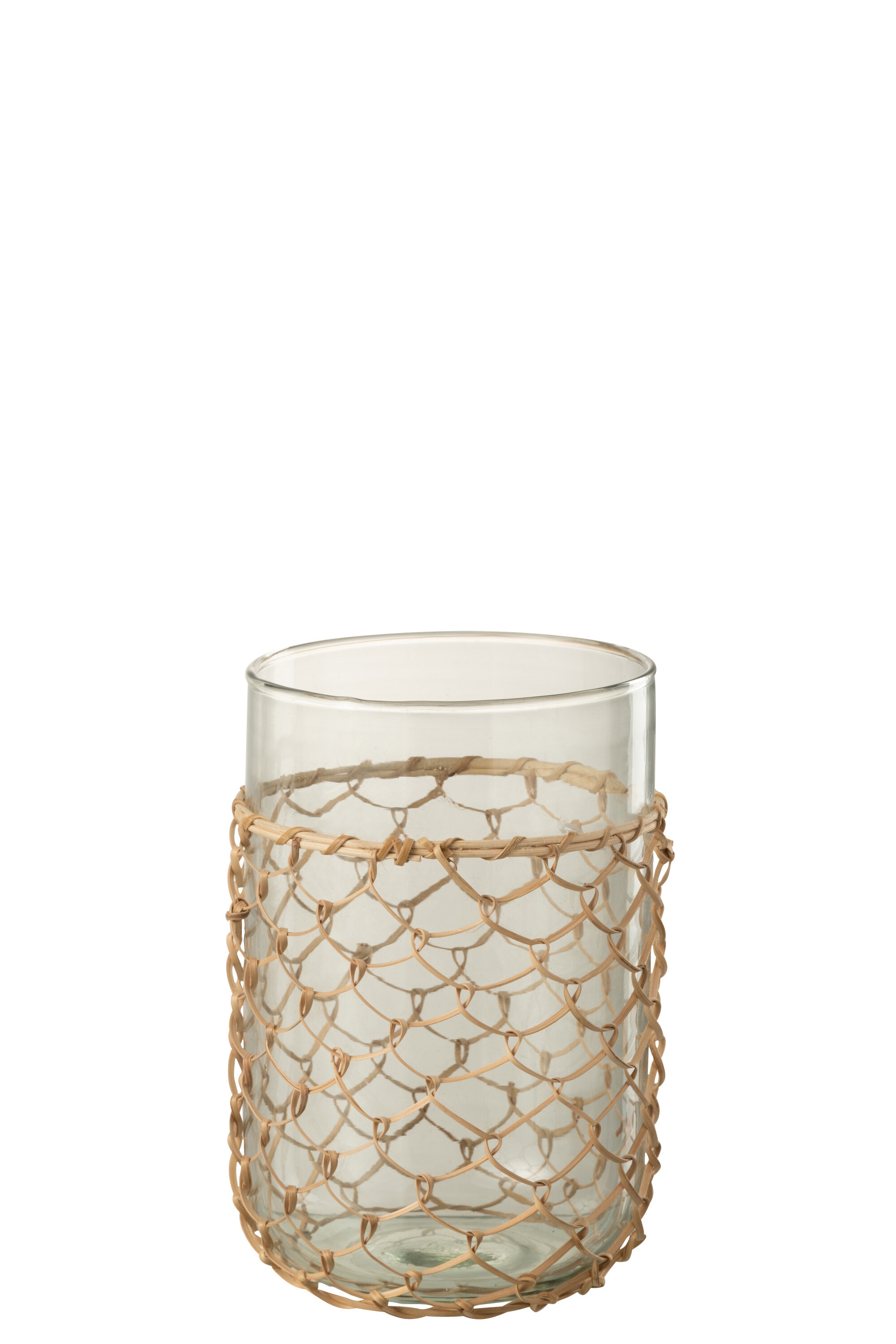 Jolipa Váza sklo bambusové zapletanie 14x14x21 cm 47210
