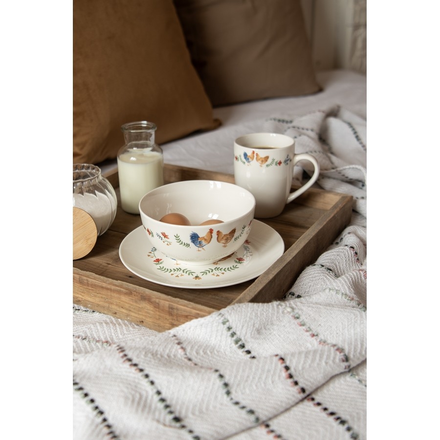 Keramická miska v bielom farebnom prevedení s vidieckym dekorom sliepočky a kohútika 14 x 7 cm Clayre & Eef 44009