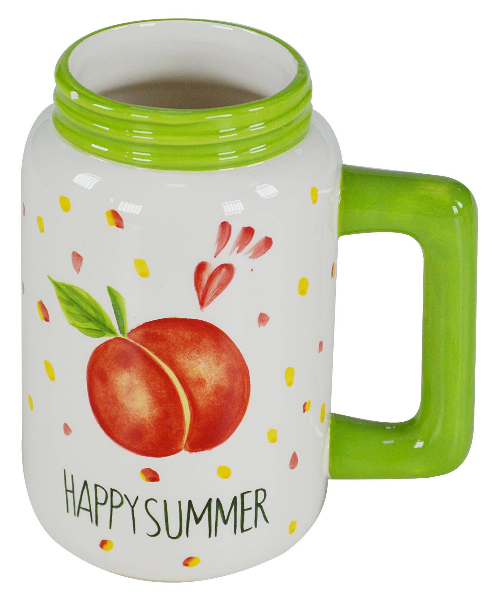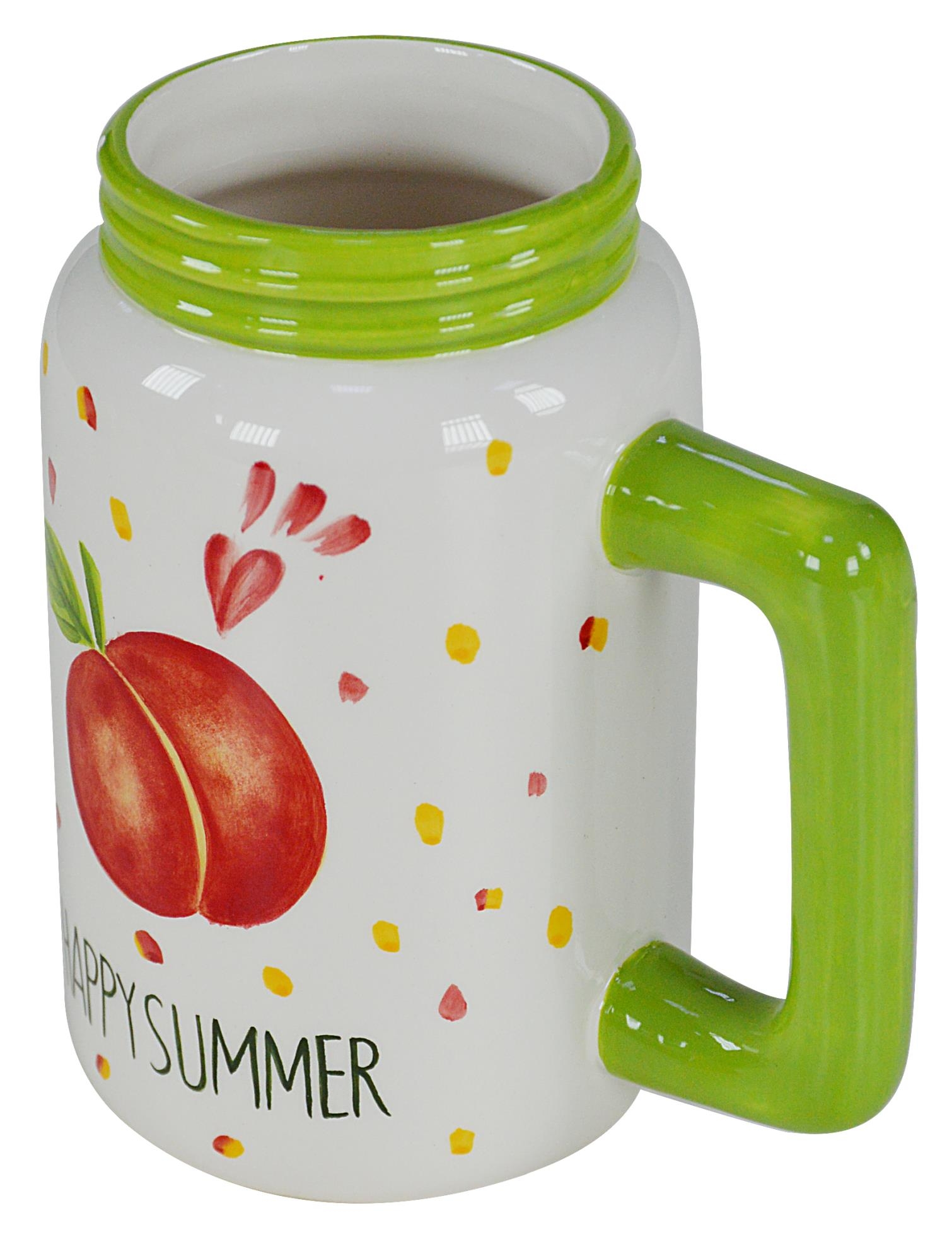 Keramický bielo zelený maxi pohár s dekorom broskyne 14,5x10,5xh13,5 cm 28233