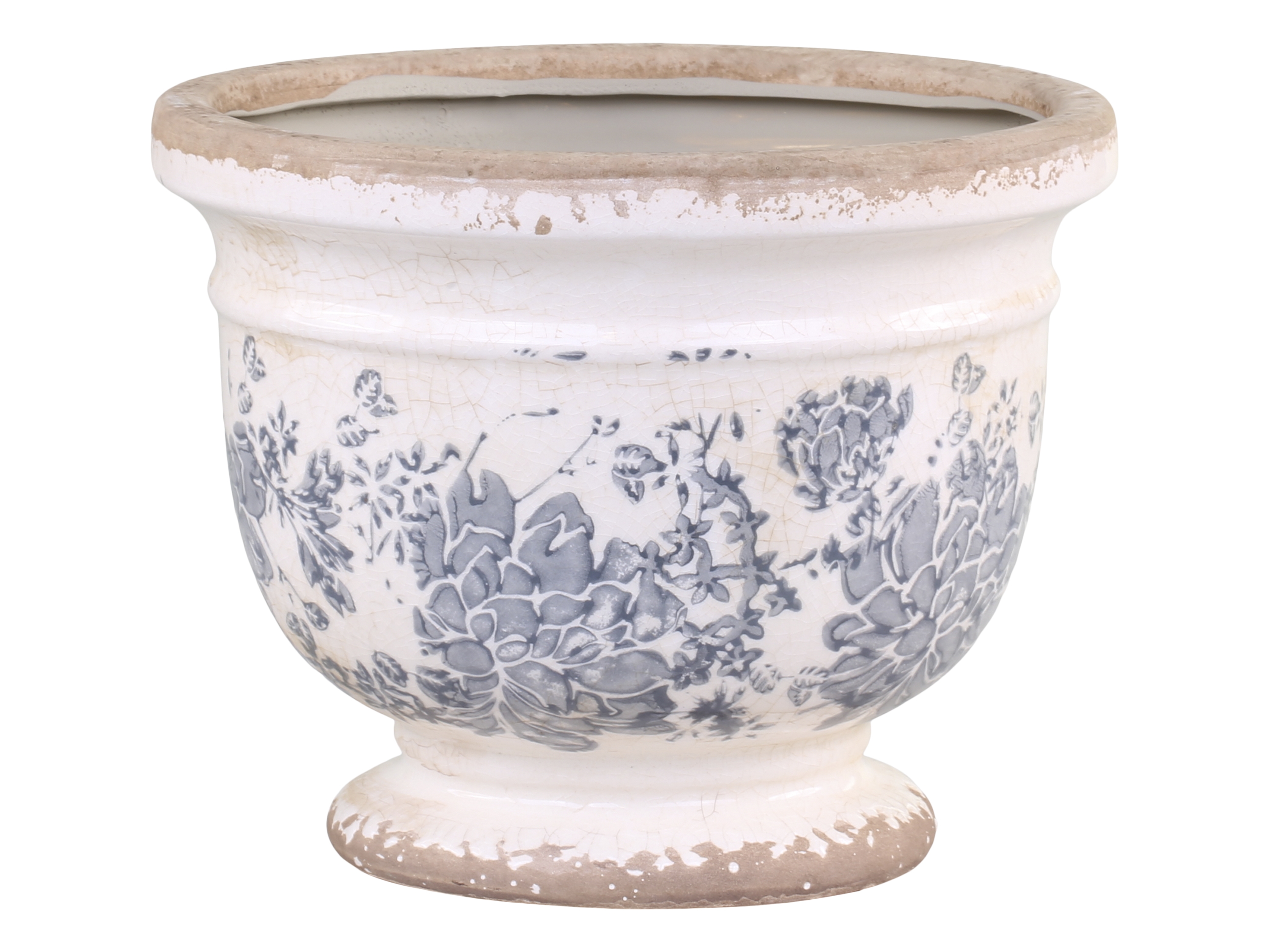 Keramický krémový kvetináč s obitým vzhľadom s dekorom modrých kvietkov vo vintage štýle malý Chic Antique 35225