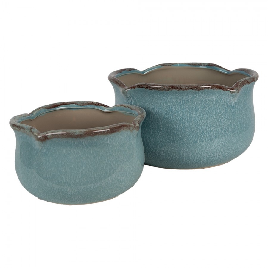 Keramický kvetináč v modrom farebnom prevedení vo vintage štýle z dielne holandskej značky Clayre & Eef. Kvetináč je vhodný do interiéru. Krásne v ňom vyniknú Vaše kvietky alebo rastlinky. Vďaka glazovanému ošúchanému vzhľadu je nádherným doplnkom do Vašej domácnosti. Rozmer kvetináča je 25 x 9 cm. Vhodné pre vnútorné použitie Nadčasový dizajn Umiestňujte vonku mimo dažďa a mrazu Možno kombinovať s inými kvetináčmi
