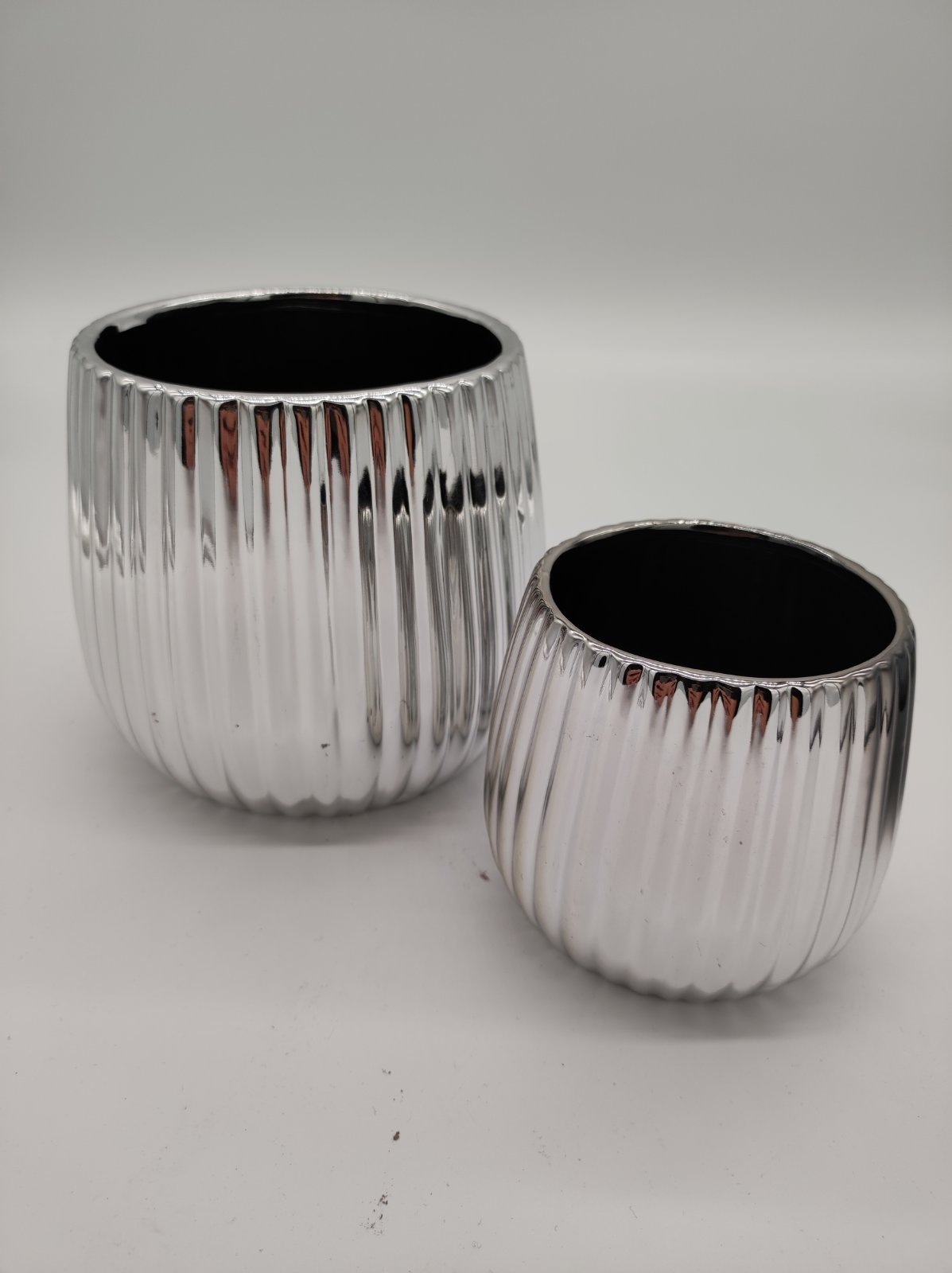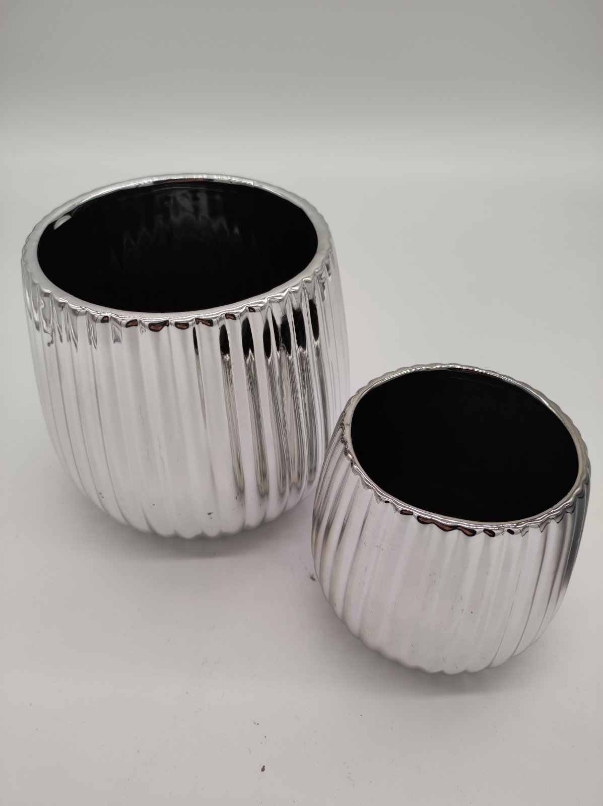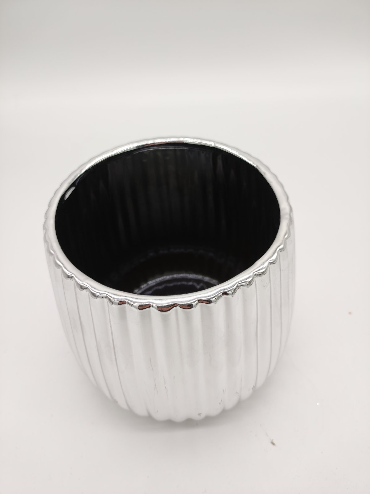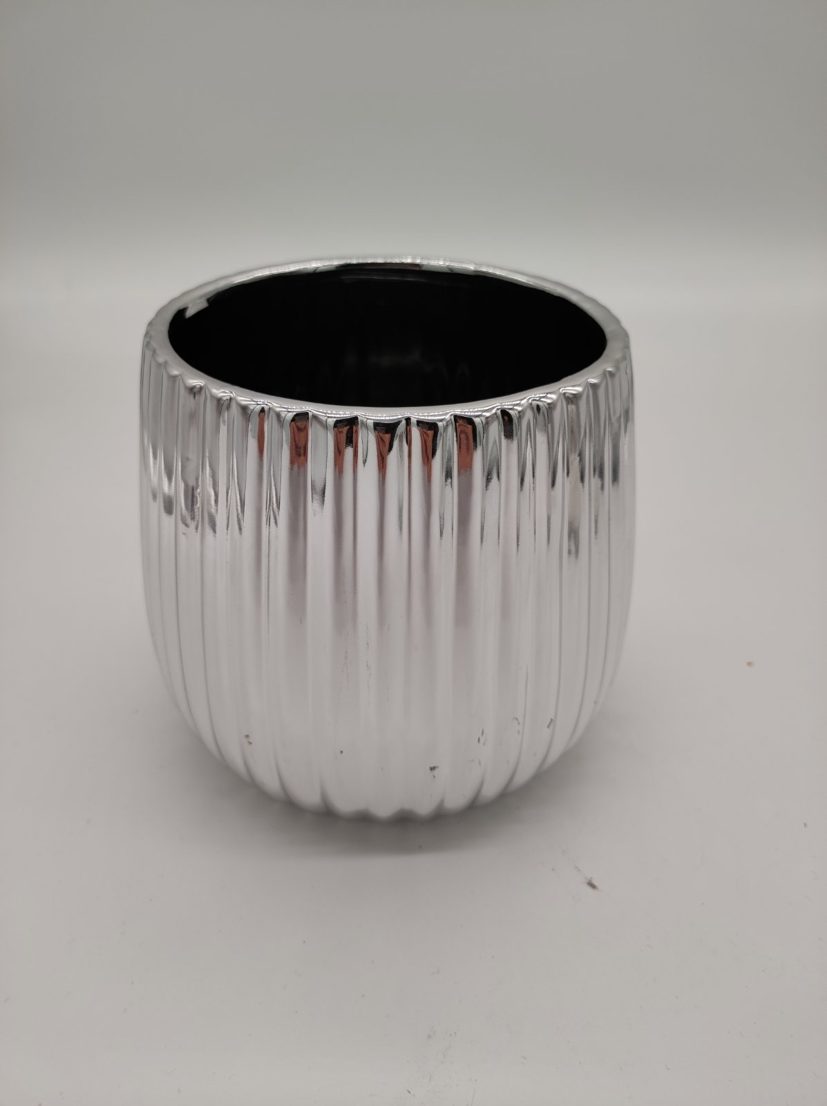 Keramický strieborný dekoratívny kvetináč veľký so vzorovaním 17,5 x 17,5 x 15 cm 36531