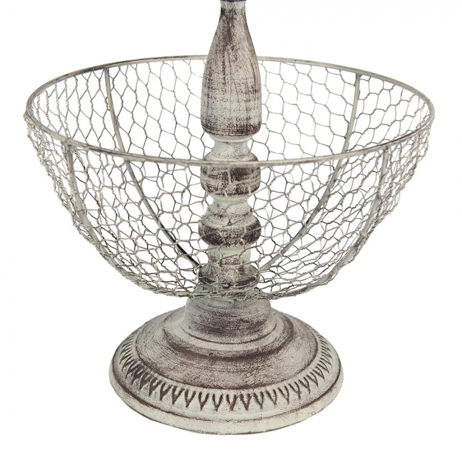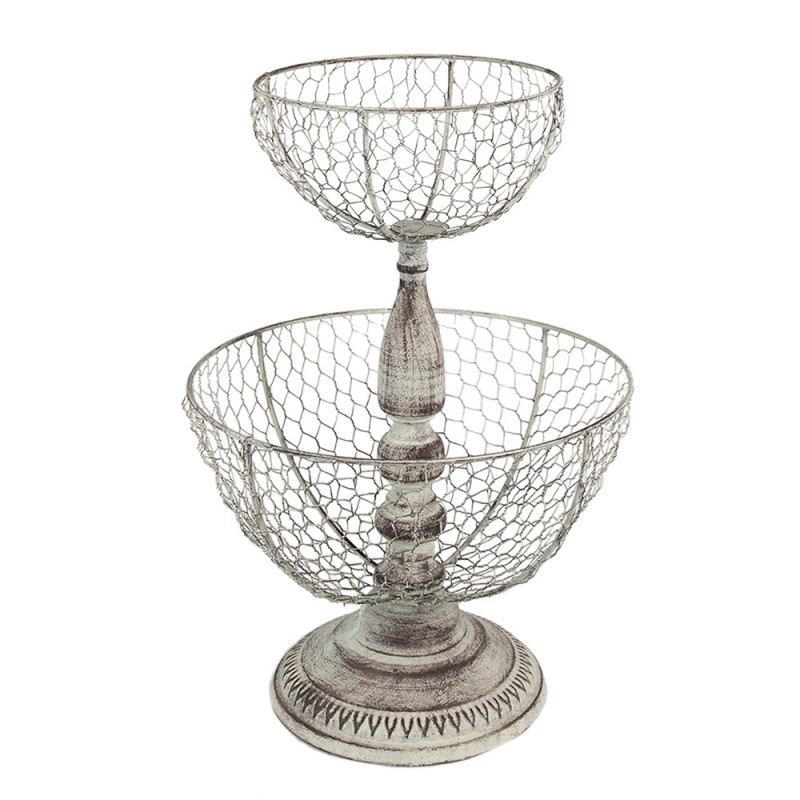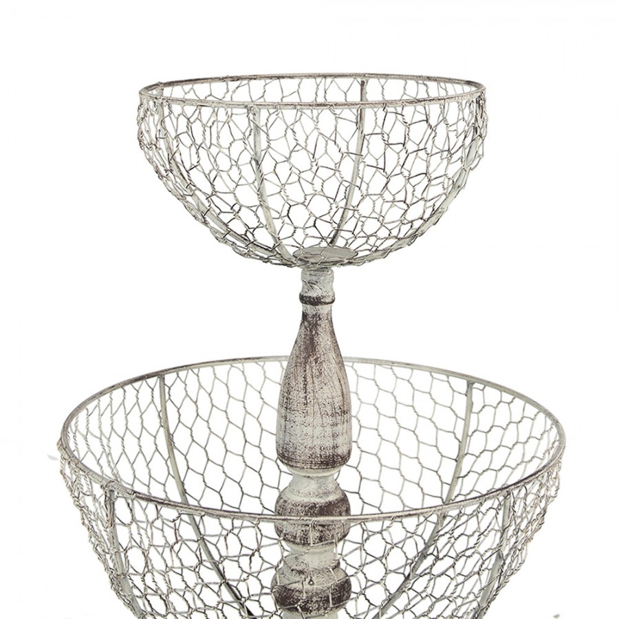 Kovová dekorácia drôteného etažéru v béžovom farebnom prevedení s dvomi košíkmi na podstavci z dielne holandskej značky Clayre & Eef. Dá sa využiť nie len na servírovanie ovocia alebo drobné slané pečivo, ale aj na dekorovanie v domácnosti. S kovovým prevedením sa hodí do každej domácnosti. Je vhodný na svadby alebo na aranžovanie. Rozmer etažéra je 30 x 44 cm. Môžete ho ozdobiť rôznymi spôsobmi K dispozícii s viacerými poschodiami Vhodné na veľký popoludňajší čaj Na podávanie sladkých a slaných aperitívov Jednoduchá montáž