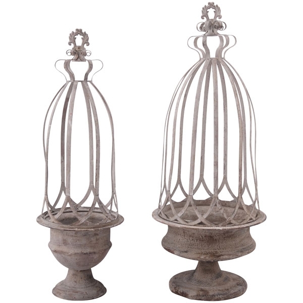 Kovová dekorácia kvetináča s klietkou v sivej patine malý 21 x 21 x 48 cm 39457