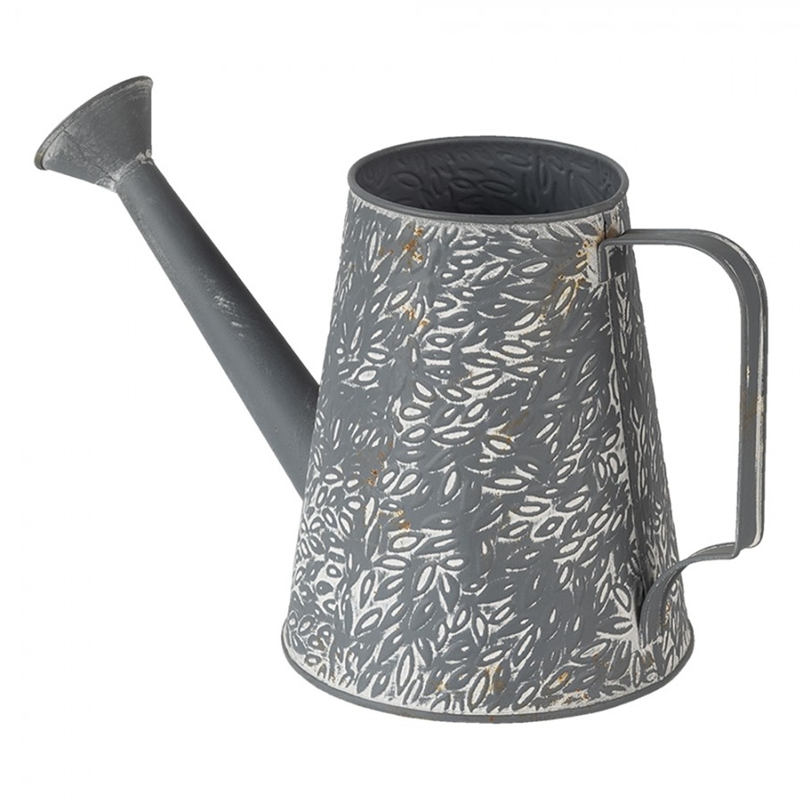 Kovová dekorácia v tvare krhly v sivom farebnom prevedení s bielym dekorovaním 14 x 14 x 17 cm Clayre & Eef 43863