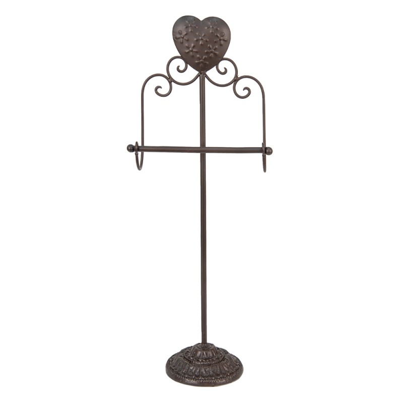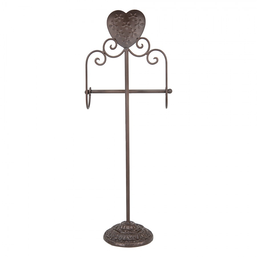 Kovová dekorácia vintage stojana v hnedom farebnom prevedení na WC papier s dekorom srdiečka 21 x 14 x 62 cm Clayre & Eef 43883