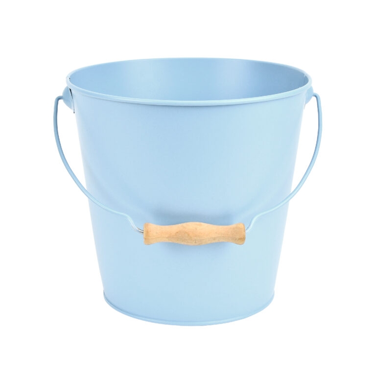 Kovové vedierko v svetlomodrej farbe. Na rúčke vedierka je pripevnené drevené madlo pre lepšie uchytenie. Vedierko sa dá použiť ako dekorácia, alebo na vysadenie rastliny. Objem je 4,82 litra a rozmer je 24,4x22,1x20,5 cm.