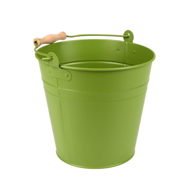 Kovové vedro v zelenej farbe s kovovou rúčkou a dreveným madlom. Objem vedra je 4,9 L a rozmer je 25,1x23,2x22,9 cm. Krásny doplnok do Vášho domova.