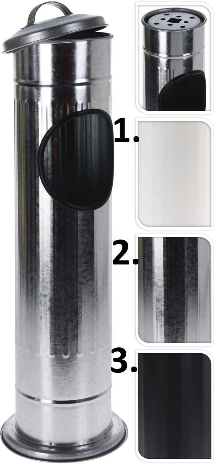 Kovový odpadkový kôš z nehrdzavejúcej ocele s popolníkom je skvelým pomocníkom do exteriéru- na balkón, terasu alebo, altánku, alebo pod strieškou. Kôš má odnímateľný popolník s kovovou vložkou, ktorá uľahčuje odstránenie odpadu. Rozmer koša: výška: 60 cm, priemer horného otvoru: 14 cm, priemer podstavca: 17 cm. Dostupný v troch prevedeniach.