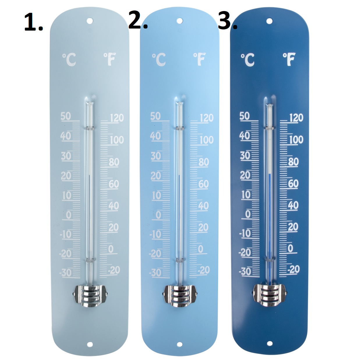 Kovový teplomer v troch modrých farebných prevedeniach 1,3 x 6,7 x 29,7 cm Esschert design 44241