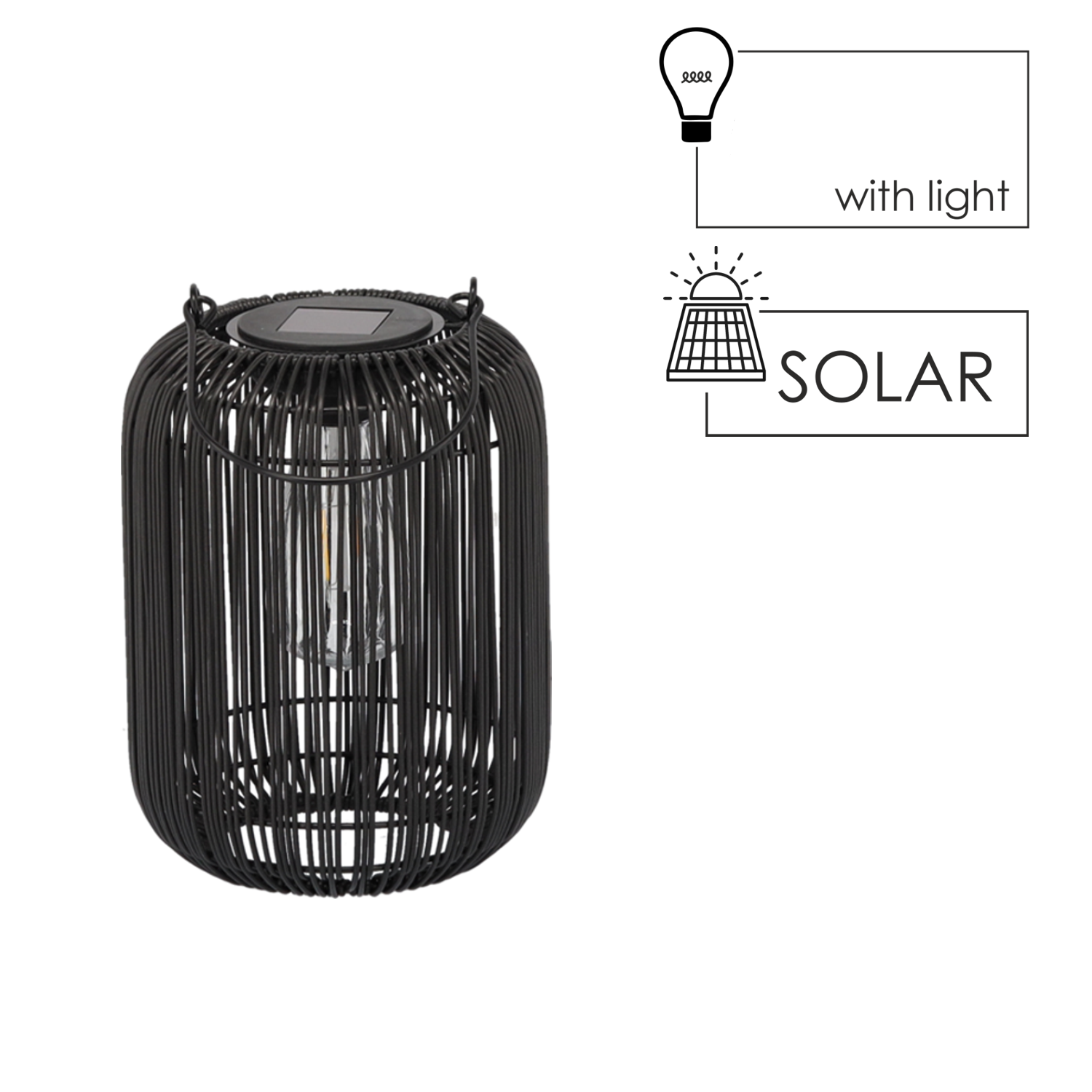 Solárny lampáš v čiernom farebnom prevedení s rúčkou. Vytvorte si útulnú atmosféru na záhrade alebo pri ďalšom kempovaní s týmto solárnym lampášom. Obsahuje rukoväť na prenášanie. Rozmer lampáša je 24 cm.