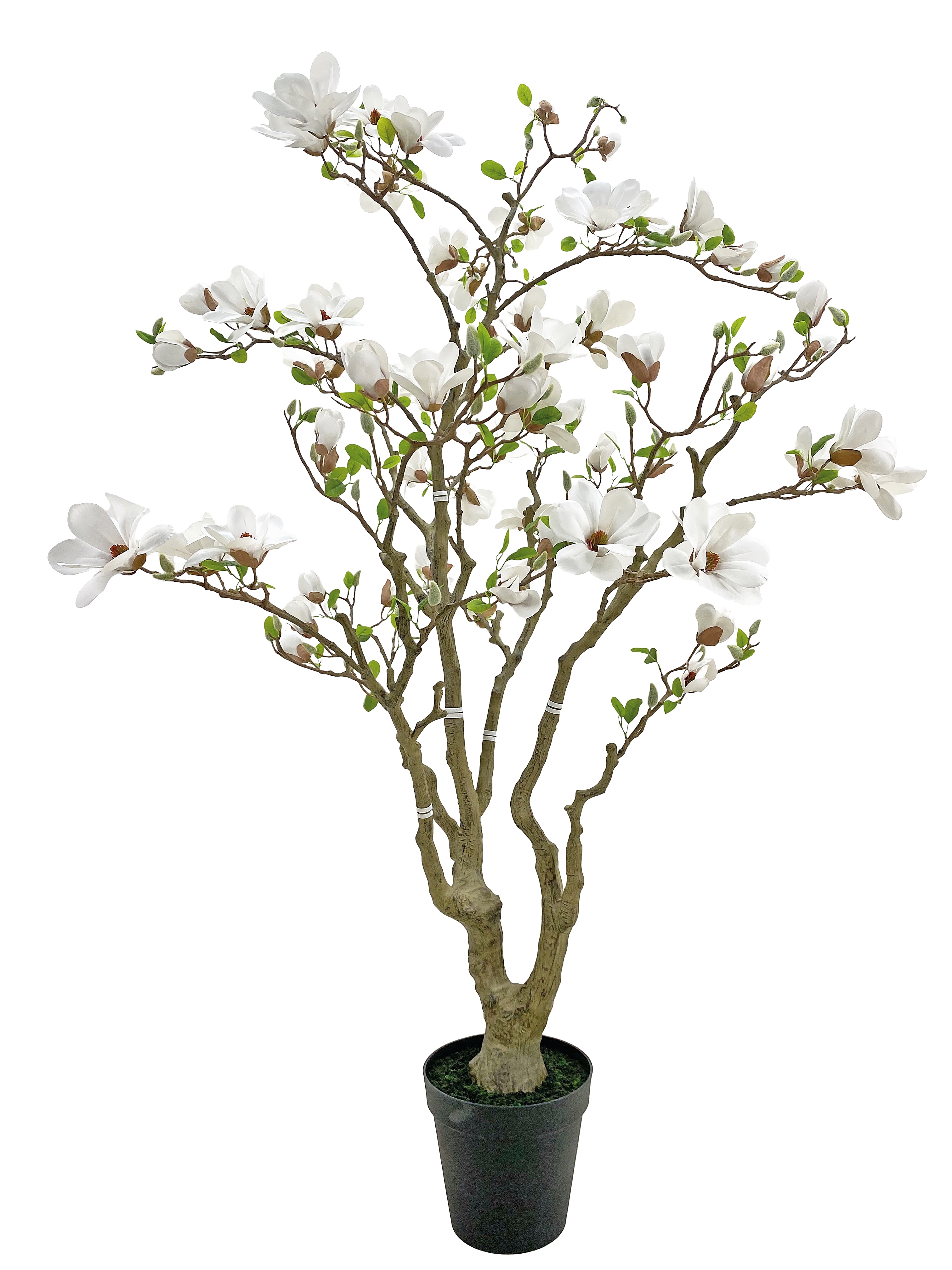 Exkluzívna umelá magnólia v bielom farebnom prevedení je výrazným dekoratívnym prvkom, ktorý dodá priestoru eleganciu a nadčasový štýl. Realisticky spracované kvety a listy vytvárajú prirodzený vzhľad bez potreby akejkoľvek starostlivosti.