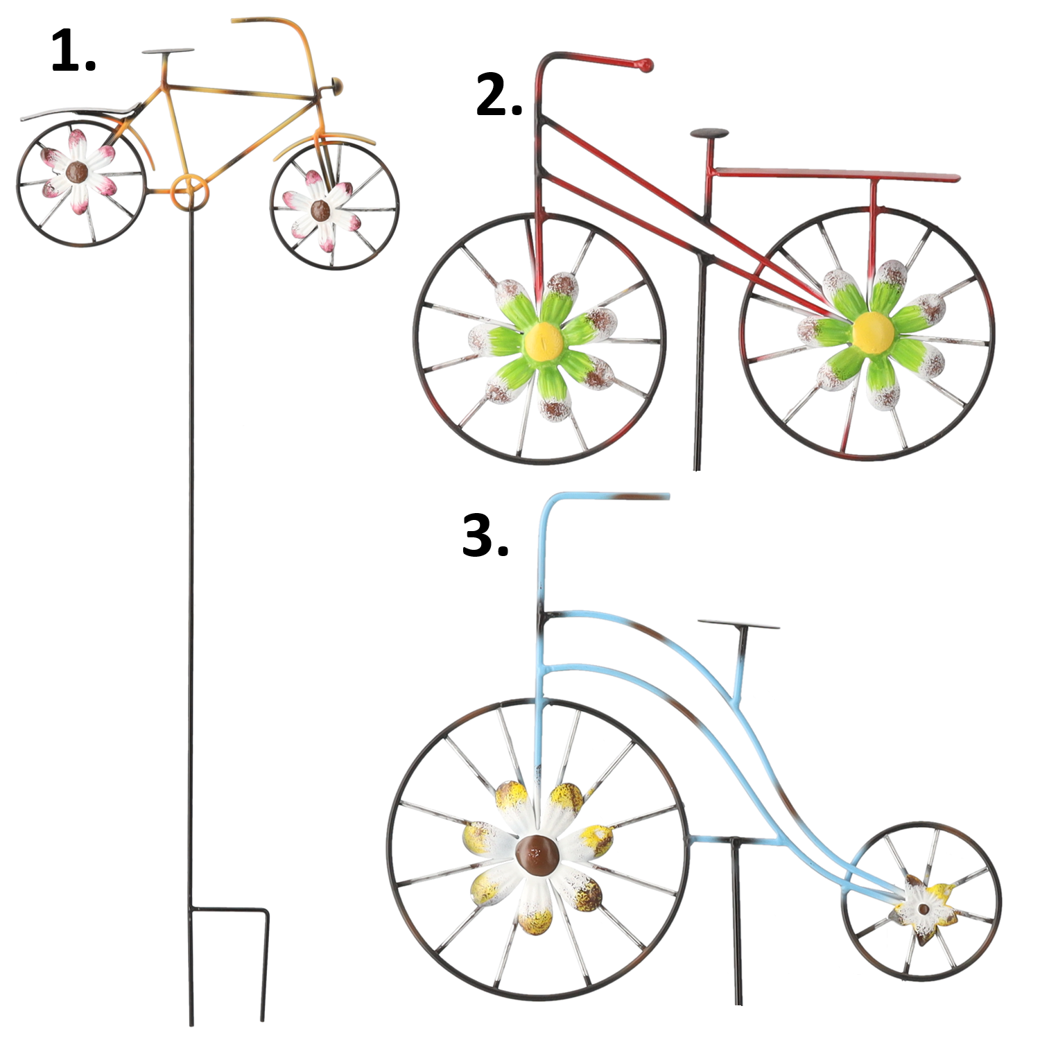 Záhradná dekorácia napichovačky v bicykla na kovovej tyči v troch prevedeniach na zapichnutie do zeme alebo do črepníka. Napichovačka je vyrobená z kovovej tyče a bicykla. Bicykel dodá Vašej záhrade radostný vzhľad. Rozmer napichovačky je 30 x 81 cm.