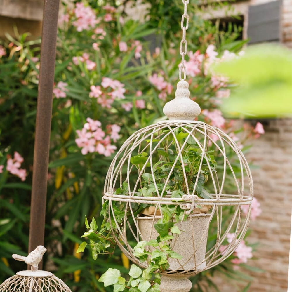 Kovová dekorácia ošúchaného kvetináča na zavesenie vo vintage štýle z dielne talianskej značky Nuvole di Stoffa. Závesný kvetináč je vhodný aj na živé rastlinky a môže sa využiť aj ako originálny svietnik ktorý Vám spríjemní letné večeri na Vašej terase. Ale taktiež si ju môžete nadekorovať podľa aktuálnej príležitosti. Rozmery unikátneho závesného kvetináča sú 27 x 41 cm .