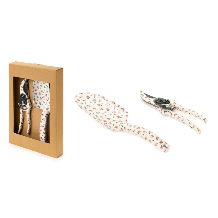 Set záhradného náradia v bielom farebnom prevedení s dekorom kvietkov z dielne talianskej značky Nuvole di Stoffa. Praktická súprava vám pomôže starať sa o záhradu. Skladá sa z 2 kusov náradia a je vyrobená z kvalitných materiálov, ktoré zaručujú príjemnú prácu uprostred prírody. Ideálne na vykonávanie úloh, ako sú: kopanie, kyprenie pôdy, strihanie, presádzanie, prevzdušňovanie a ďalšie.