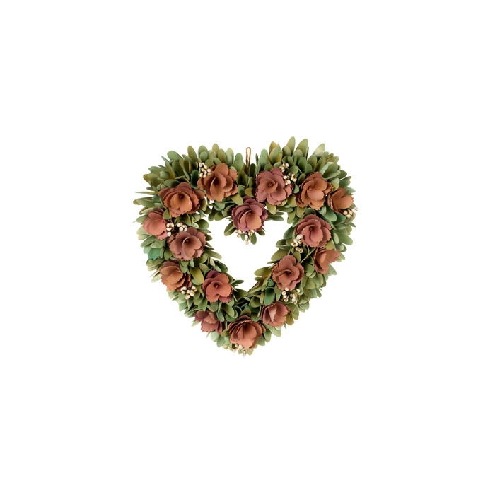 Umelý veniec v tvare srdca s lístkami a ružovými kvietkami z dielne talianskej značky Nuvole di Stoffa. Veniec je krásnou dekoráciou či už do interiéru alebo do exteriéru. Vďaka nezvyčajnému vzhľadu prinesie do Vášho domova krásnu atmosféru. Oživte si svoj domov týmto neuveriteľne krásnym vencom. Rozmer venčeka je 35 cm.