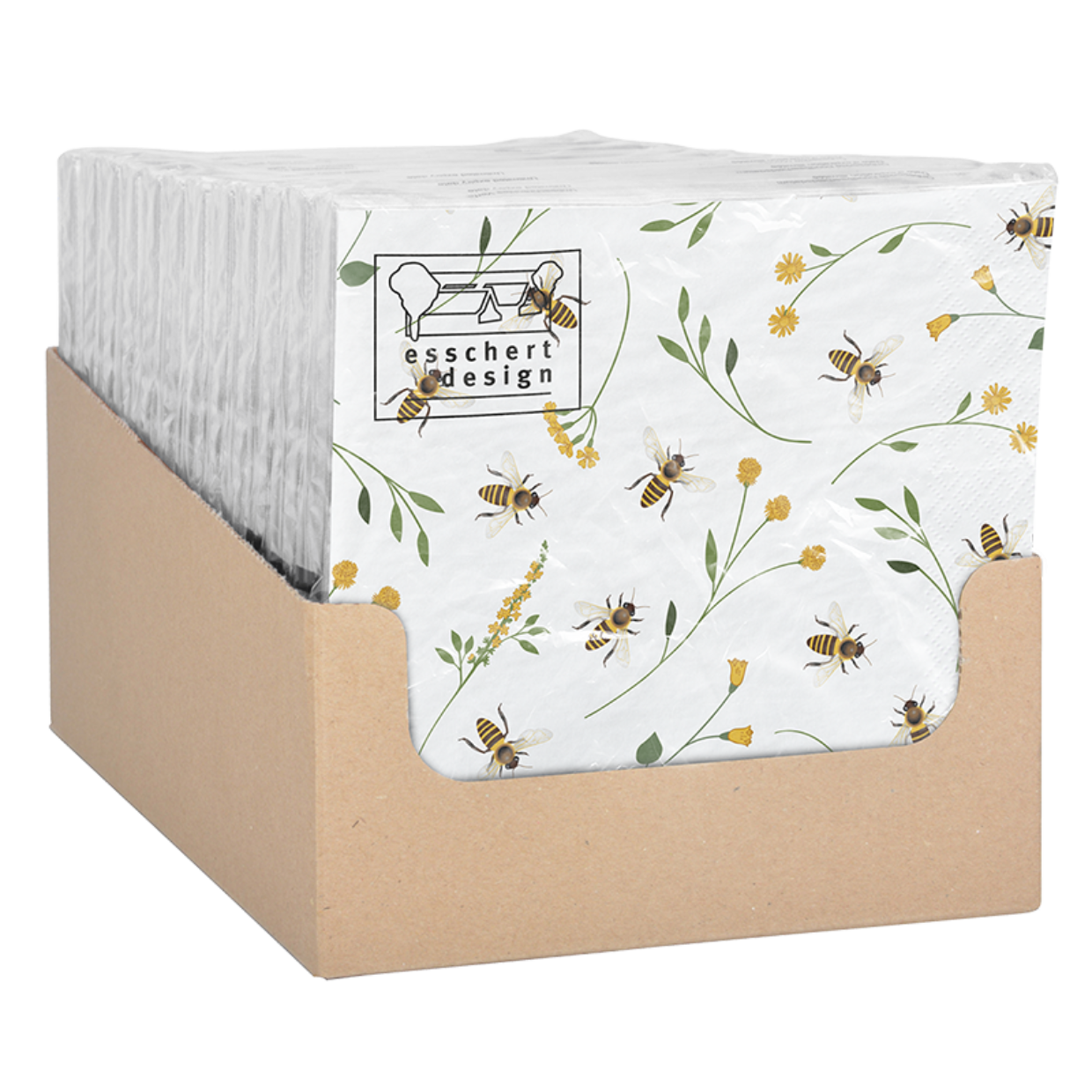 Papierové biele obrúsky so včelím motívom 3 vrstvové 20 ks v balení z dielne holandskej značky Esschert design. Obrúsky rozžiaria stôl pri akejkoľvek príležitosti. Ideálne na raňajky, obed, popoludňajší čaj, záhradné párty alebo večeru.