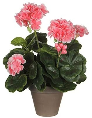 Jedinečné pelargónie - muškáty v nádherných farbách na nerozoznanie od živých. Umelé kvety Vám ušetria čas aj starosti. Bez polievania a bez námahy sú nádherné po celý rok a pritom vyzerajú ako živé, na dobrom mieste pestované, muškáty. Umelé kvety v črepníku majú rozmer 34 x 20 cm.