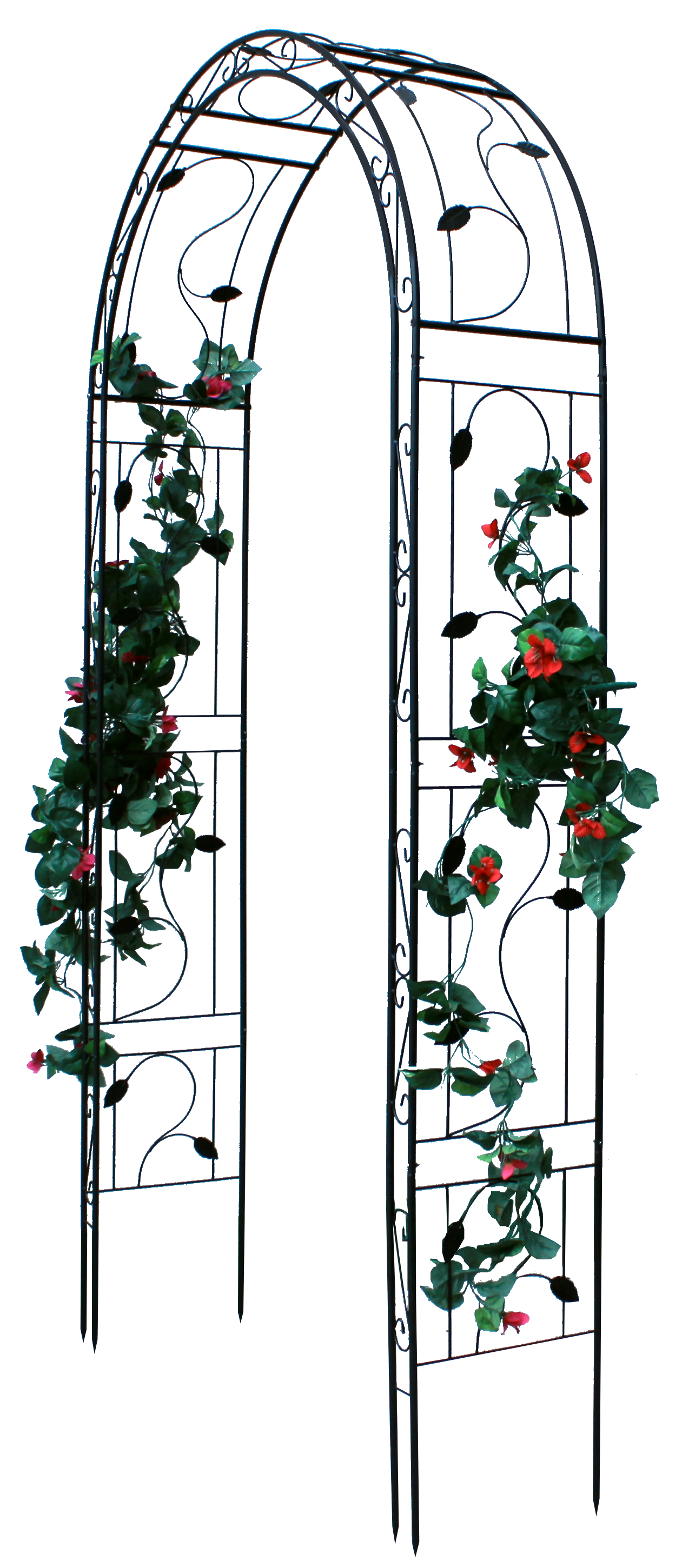 Kovová záhradná dekorácia pergoly v čiernom farebnom prevedení. Pergola slúži ako opora pre Vaše kvetiny. Ideálne využitie ako podpora pre popínavé rastliny, predovšetkým ruže alebo brečtan. Záhradná pergola je samozrejme vhodná pre celoročné umiestnenie vonku. Rozmer pergoly je 130 x 39 x 260 cm.