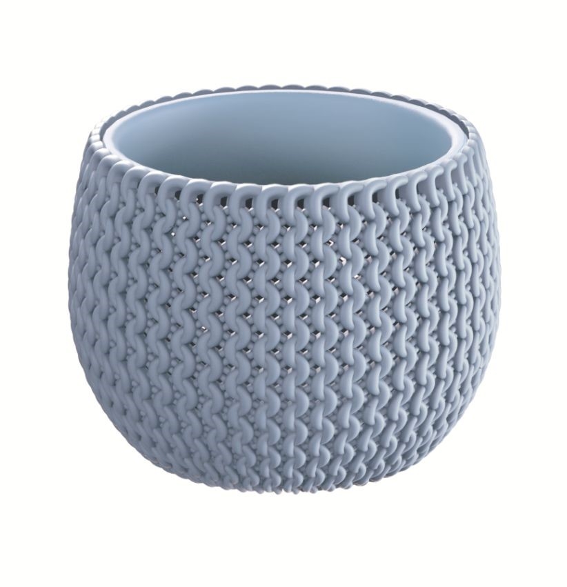 Guľatý plastový kvetináč v ľadovo sivej farbe s plastovou vložkou na vysadenie rastliny. Kvetináč má zaujímavú štrikovanú štruktúru. Je vyrobený z vysoko kvalitného plastu, odolnému voči UV žiareniu. Kvetináč môžte použiť v interiéry, na terasách, alebo v záhrade. Priemer kvetináča je 18 cm.