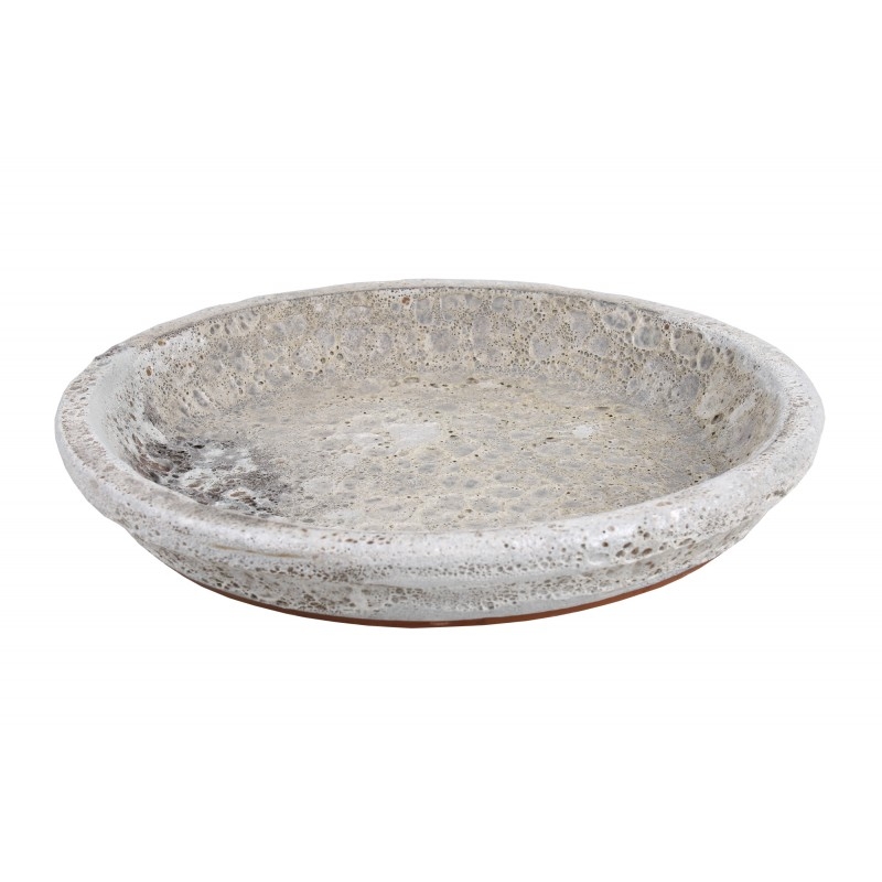 Keramická podmiska pod kvetináč v sivo-bielom farebnom prevedení s drsným povrchom. Podmiska je vhodná pod kvetináč, pre celoročné vnútorné použitie, a vonkajšie mimo mrazov na balkón, okenné parapety, terasu či záhradu. Je vyrobená z vysoko kvalitného, ľahko umývateľného keramickému materiálu. Rozmer podmisky je vonkajší priemer 25 cm, vnútorný priemer 18 cm, výška 3 cm.